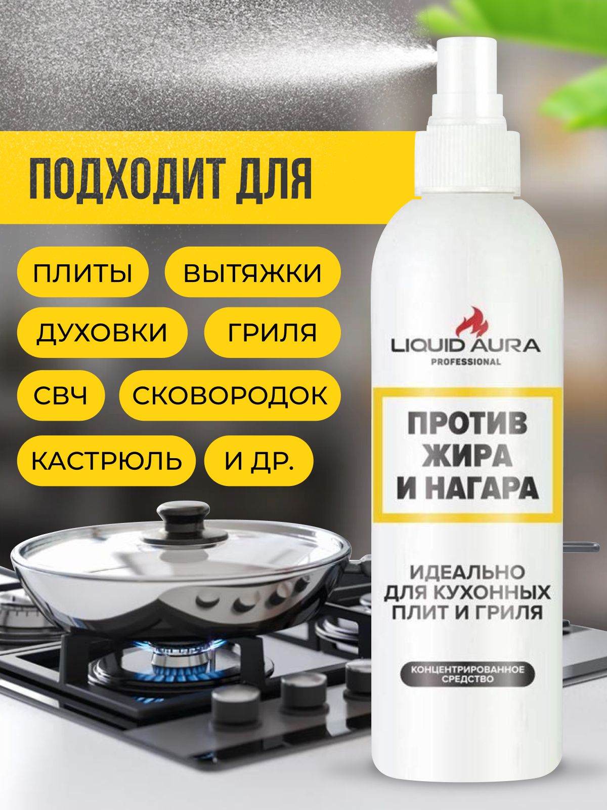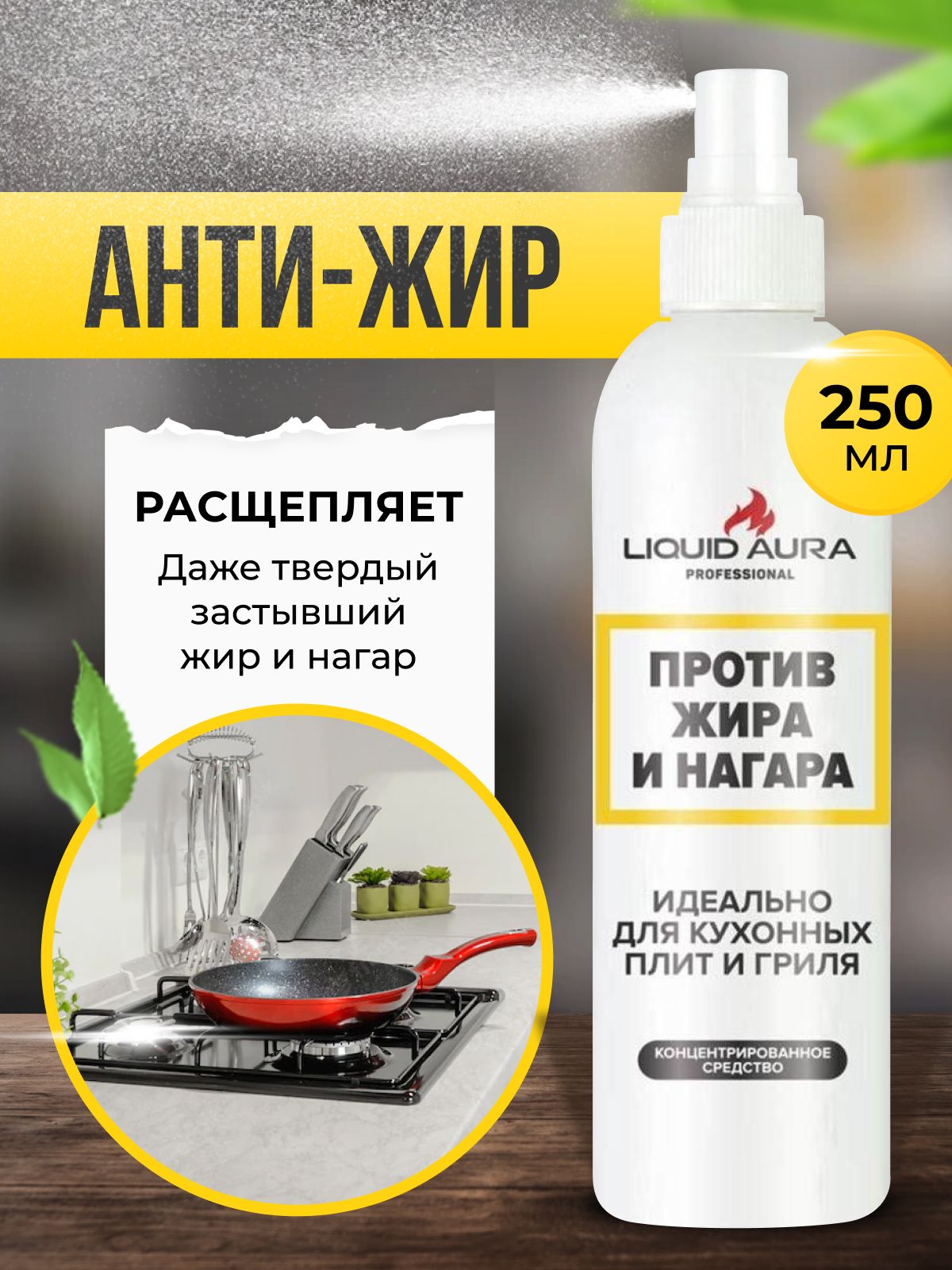 Чистящее средство жироудалитель - антижир для кухни Liquid Aura, 250 мл