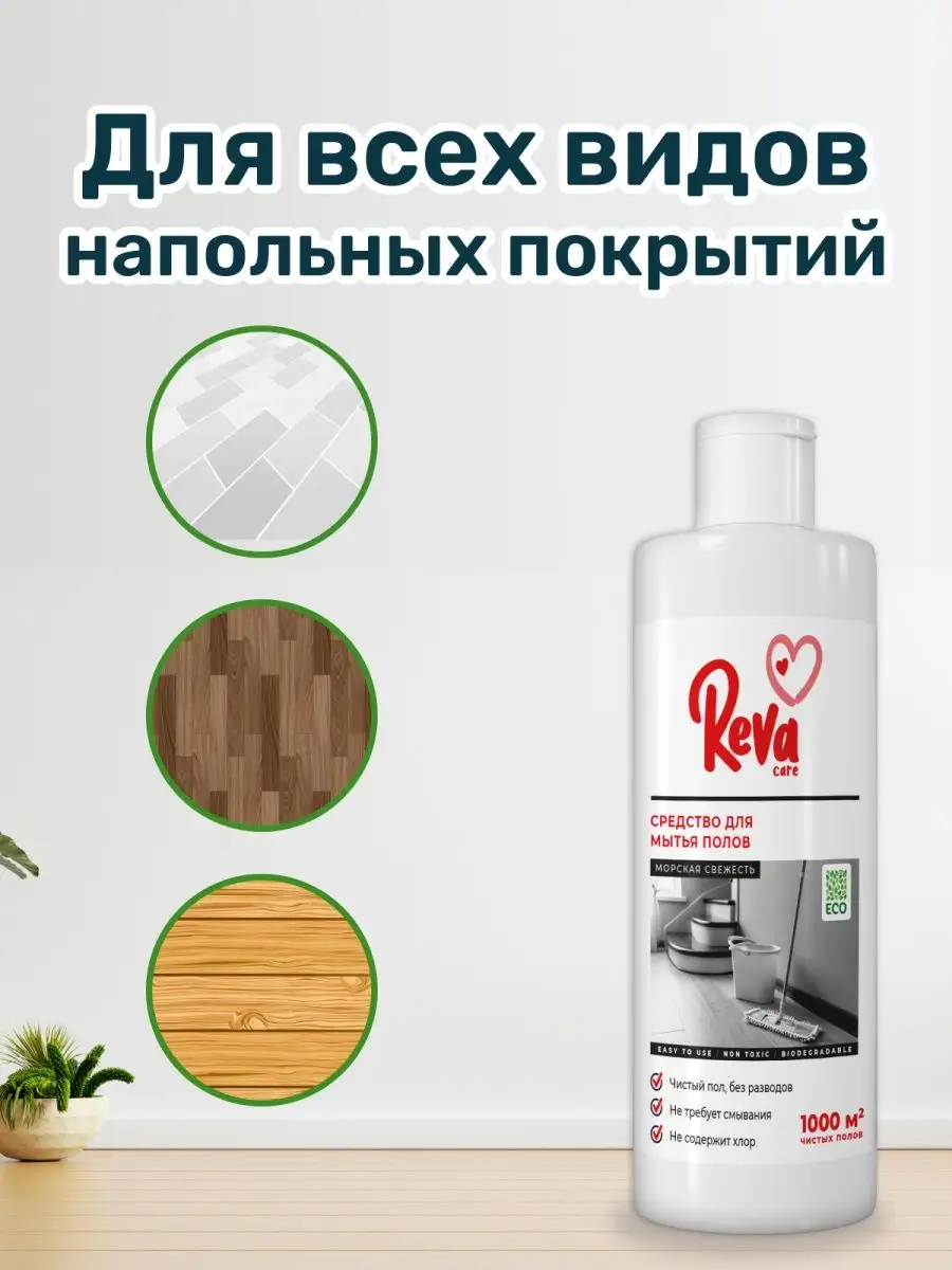 Описание: Набор ароматная жидкость для мытья полов и ламината с ароматом морской свежести и лимона емкостью 1 литр (1л) - это универсальное чистящее средство для уборки дома и удаления грязи с различных поверхностей. Экологичное, безопасное для детей и домашних животных и не содержащее хлора, оно отлично справляется с пылью, разводами и пятнами. Наш гель - это эффективное антибактериальное хозяйственное средство с противогрибковым и антистатическим эффектом, которое прекрасно устраняет запахи, полирует пол и не требует смывания. С ним вы получите невероятный блеск чистоты на ваших напольных покрытиях и ощутите в полной мере премиум - качество от российского бренда Reva Care. Так как наш продукт гипоаллергенный, это отличный выбор мам для ухода за детскими комнатами. Наше моющее средство не повреждает защитный слой напольного покрытия и эффективно очищает его даже в холодной воде, поэтому идеально подходит для ежедневной уборки. Это профессиональное средство - универсальная бытовая химия, которая подходит для чистки любых помещений, от пола и зеркал до плитки туалетных и ванных комнат, ковров. Оно идеально для использования на любых материалах и покрытиях - линолеум, ламинат, паркет, керамическая плитка и кафель, имеющий глянцевую поверхность. Оно может использоваться в любом помещении - от туалета и кухни до душа, всей квартиры или дачи. Прекрасно справляется с очисткой комнаты малышей. Избавит коврик питомца или большой напольный ковер от шерсти и других загрязнений, а также подходит для обработки межплиточных швов. Благодаря своему дезинфицирующему и ароматическому эффекту, оно удаляет запахи, освежает воздух и придает сияние паркету. Также может быть использовано в сочетании с моющим пылесосом или для влажной мойки. Это активное и эффективное поломоечное средство можно использовать для устранения любых загрязнений и пятен, максимальной очистки и гигиены.