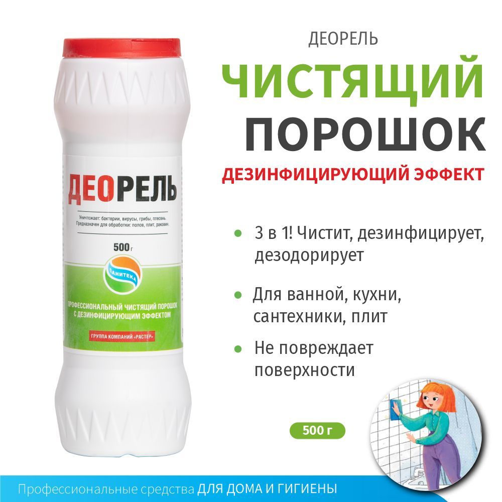 Чистящий дезинфицирующий порошок "Деорель", 500 мл