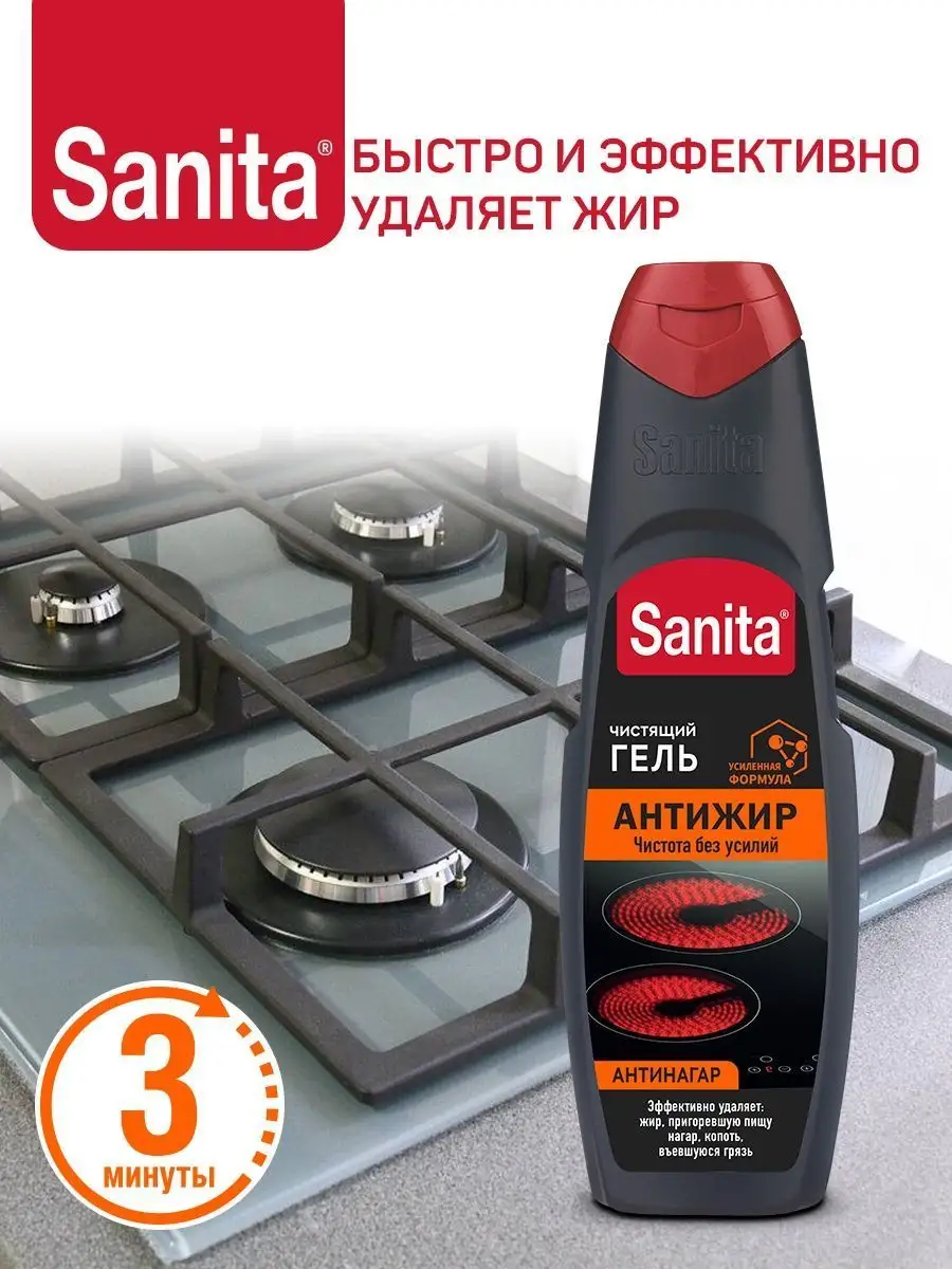 Описание: Набор гелей Sanita Антижир - это профессиональный помощник в борьбе с загрязнениями в вашем доме. Активная формула проникает в пригоревший жир, отделяет его от поверхности, превращаясь в мыльный раствор, который легко смывается водой. Чистящая жидкость идеально подходит для удаления жировых загрязнений с кухонных плит, микроволновых печей, духовых шкафов, а также для мытья поверхностей на кухне, не оставляя разводов и царапин после высыхания. Средство эффективно удаляет пятна и загрязнения на поверхности бытовой техники. Благодаря специальной составу, содержащемуся в пене, очиститель Санита проникает глубоко в поры материалов, освежает и восстанавливает их первоначальный вид. Бытовая химия также прекрасно справляется с очисткой кухонных столешниц, духовых шкафов, плит, фритюрниц, вытяжек, сковородок, противней, кастрюлей. Этот хозяйственный товар удаляет жир, налет и пятна, обеспечивая безупречную чистоту и придает приятный свежий аромат, нейтрализуя неприятные запахи. Густая консистенция позволяет экономно расходовать продукт. Достаточно просто нанести гель, выдержать 3 минуты и смыть водой.