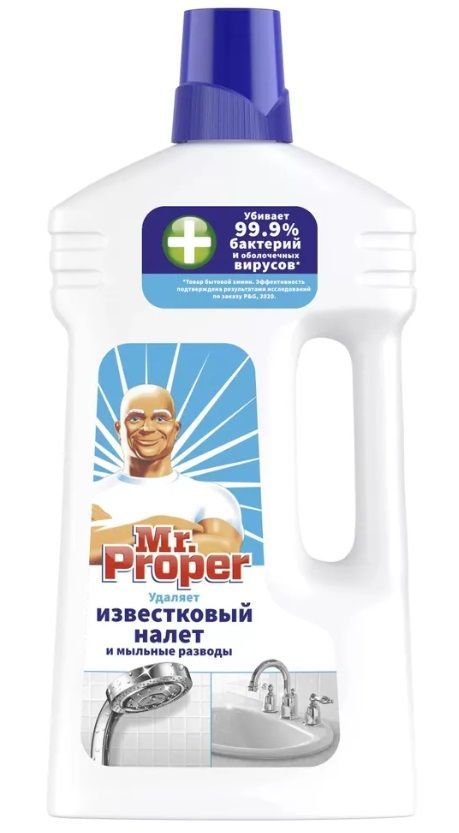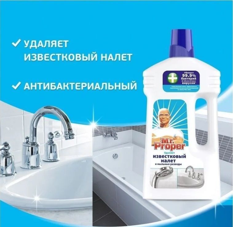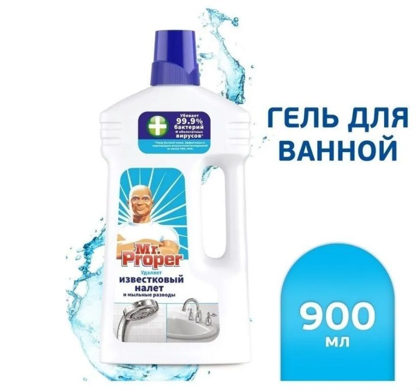 Описание: Гель для ванной комнаты против известкового налета. Чистящее средство Mr. Proper в формате геля разработано для быстрого очищения известкового налета, избавления от мыльных разводов на полу, стенах или сантехнике.В составе продукта нет хлора, аммиака и других агрессивных компонентов. Гель эффективно удаляет въевшуюся грязь с любых твердых поверхностей.Особенности чистящего геля Mr. Proper против известкового налета:• Удаляет до 100% загрязнений. Активная гелевая формула справляется с грязью без лишних усилий с вашей стороны.• Для ежедневной уборки. Средство подходит для регулярной уборки в ванной.• Бережное очищение. Средство легко распределяется, мягко воздействует на поверхности, не царапая их.• Против бактерий. Mr. Proper убивает до 99,9 % бактерий, устраняет неприятные запахи и придает блеск поверхностям.Mr. Proper «Против известкового налета» не имеет резкого запаха. Его можно использовать для чистки ванных, душевых кабин, раковин, смесителей, керамической плитки.