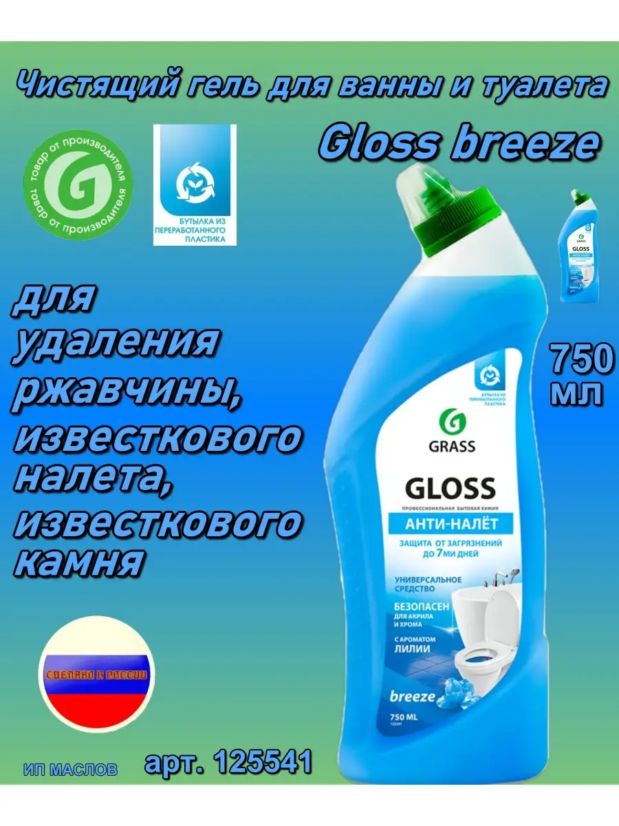 Чистящий гель для ванны и туалета Gloss breeze