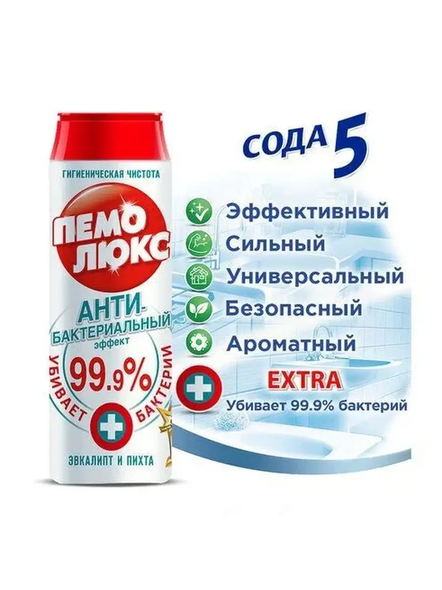 Описание: Универсальное чистящее средство ПЕМОЛЮКС. В наличии СОДА 5 ЯБЛОКО/ ЭВКАЛИПТ И ПИХТА/МОРСКОЙ БРИЗ/PRO NATURE. Чистящее средство ПЕМОЛЮКС обладает дезинфицирующим эффектом, уничтожает бактерии, вирусы, микрогрибы и их споры, прекрасно справляется с различной грязью. Порошок является отличным очистителем для уборки на кухне, в туалете и в ванной комнате. Чистящее средство ПЕМОЛЮКС Сода-5 подходит для плит, кафеля, ванн, унитазов и различных твердых поверхностей по всему дому. Не содержит хлора и опасных химикатов. Легко смывается и оставляет приятный аромат яблока. С ним уборка будет эффективной и безопасной. Наш порошок для уборки Пемолюкс сода Яблоко ничем не уступают таким товарам как MEINE LIEBE / Универсальное моющее средство с дезинфицирующим эффектом; COMET / Чистящее средство универсальное Комет; PROFIT SUPRA Профессиональный чистящий порошок для уборки и другим. Пожалуйста, оставьте отзыв на наш товар. Мы постоянно следим за качеством нашей продукции и быстро реагируем на замечания. Хотите, чтобы ваш дом всегда был идеально чистым и свежим? Попробуйте порошок Пемолюкс - это универсальное чистящее средство для всех поверхностей, которое поможет вам добиться максимального эффекта при уборке. Содержащий в себе соду и кремсоду, Пемолюкс - это антибактериальный порошок, который поможет бороться с бактериями и грязью в вашей кухне и ванной. Благодаря своему чистящему эффекту, он удаляет любые пятна и загрязнения, оставляя вашу поверхность свежей и блестящей. Кроме того, Пемолюкс содержит экстракт лимона и яблока, которые придают ему приятный аромат и дополнительные свойства очищения. Он также содержит безалюминиевый крем, который обеспечивает мягкое и бережное очищение поверхности. Используйте Пемолюкс для уборки кафеля в ванной комнате, для чистки кухонной плиты и духовки, а также для очистки унитаза и других хозяйственных товаров. С этим универсальным чистящим средством вы сможете легко и быстро добиться идеальной чистоты в своем доме. Не терпите грязи и пятен в своем доме - попробуйте порошок Пемолюкс и наслаждайтесь чистотой и свежестью в своем доме! Порошок Пемолюкс - это не просто средство для уборки, это способ обеспечить гигиену и чистоту в вашем доме. Благодаря антибактериальным свойствам, он эффективно борется с бактериями и грибками, предотвращая их размножение. Кроме того, Пемолюкс не содержит агрессивных химических веществ, которые могут нанести вред вашему здоровью и окружающей среде. Он легко смывается водой и не оставляет никаких следов, не повреждает поверхности, не вызывает аллергии и идеально подходит для использования в любых условиях. Порошок Пемолюкс - это универсальное средство для уборки, которое можно использовать в любой комнате вашего дома. Он идеально подходит для чистки кафеля в ванной комнате, для удаления жирных пятен на кухонной плите, для очистки унитаза и других хозяйственных товаров. Кроме того, его можно использовать для мытья полов и других поверхностей, чтобы добиться идеальной чистоты. Если вы ищете надежное и эффективное средство для уборки, которое не только очистит ваш дом, но и защитит его от бактерий и грибков, порошок Пемолюкс - это именно то, что вам нужно. Попробуйте его сегодня и наслаждайтесь идеальной чистотой в своем доме!