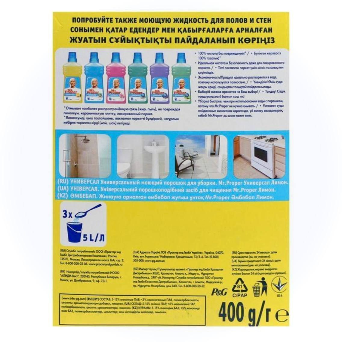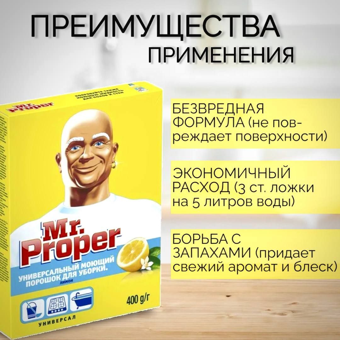 Чистящий порошок Mr. Proper универсальный для пола, кухни и ванны 400 грамм