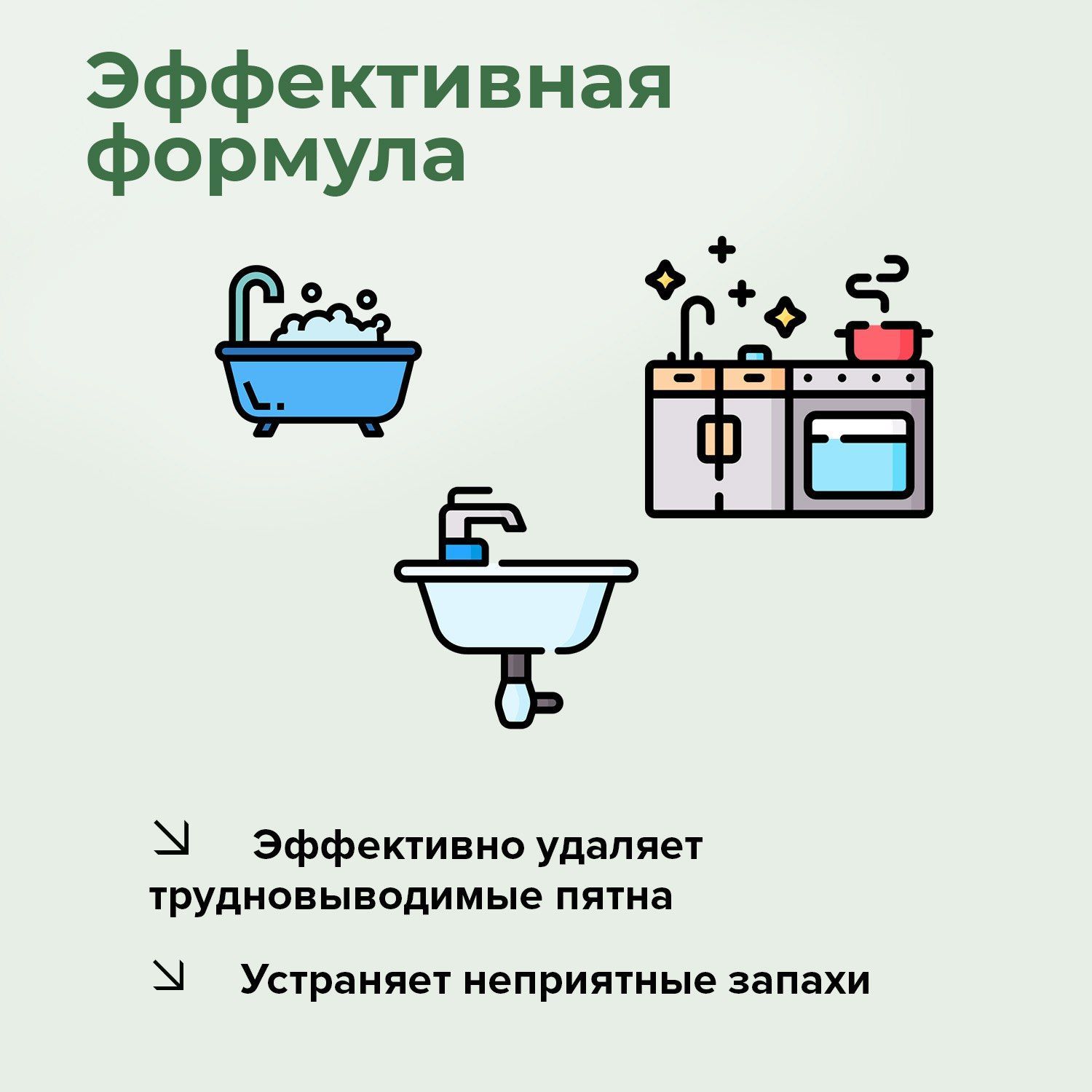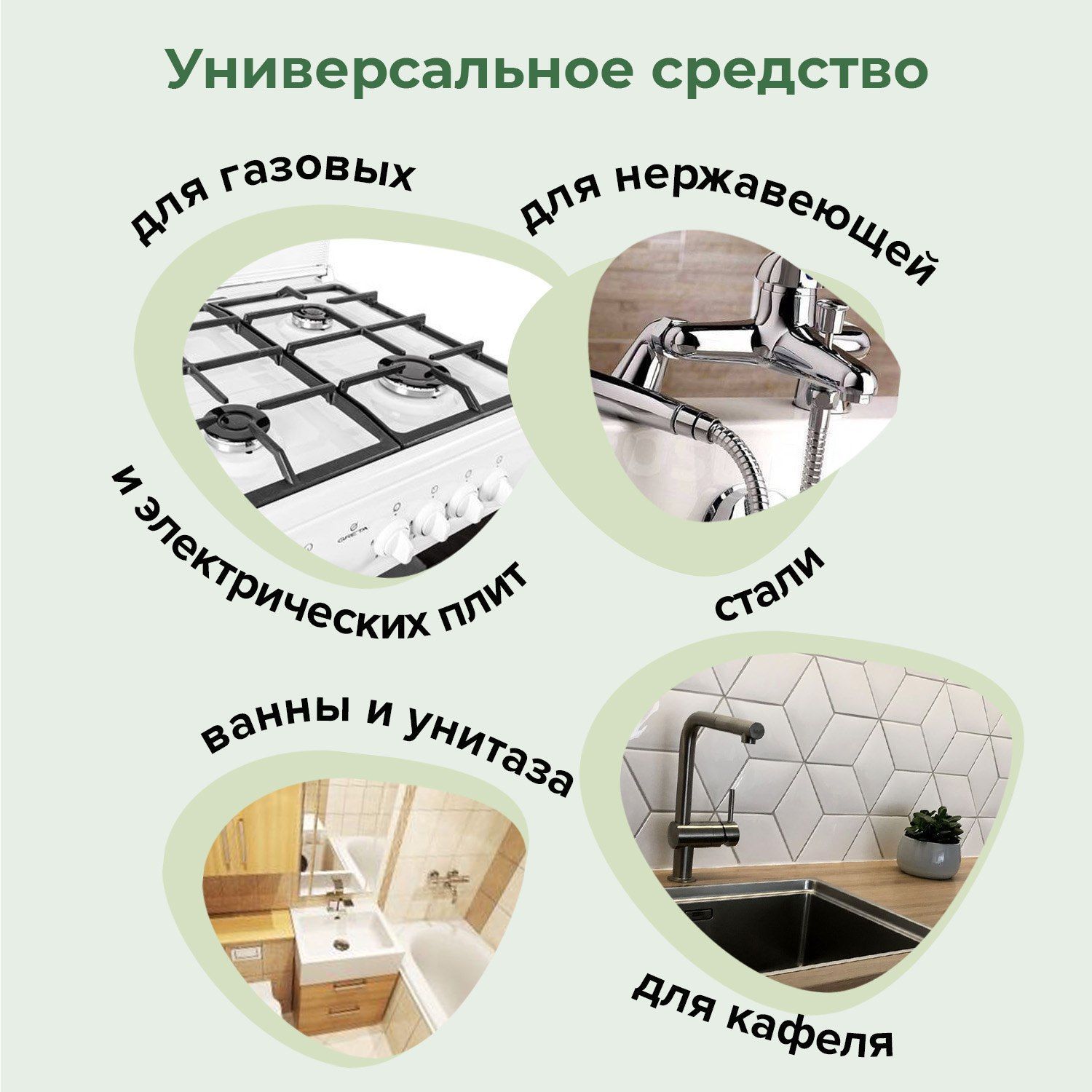 Назначение моющего, чистящего средства: Для дезинфекции, Для нержавеющей стали, Для пластиковых поверхностей, Для ухода за плитой и СВЧ, Против запахов, Универсальное, От ржавчины