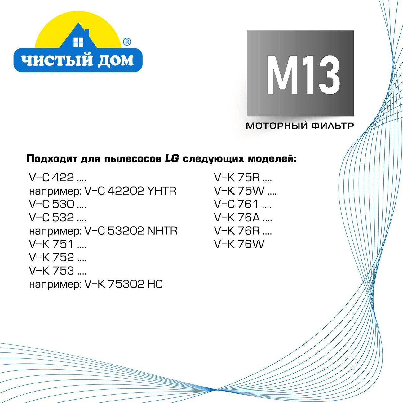Чистый Дом M 13 LGE Комплект моторных фильтров для пылесосов LG VC422,532,761,VK751-753,VK 75R,75W,76 A/R/W