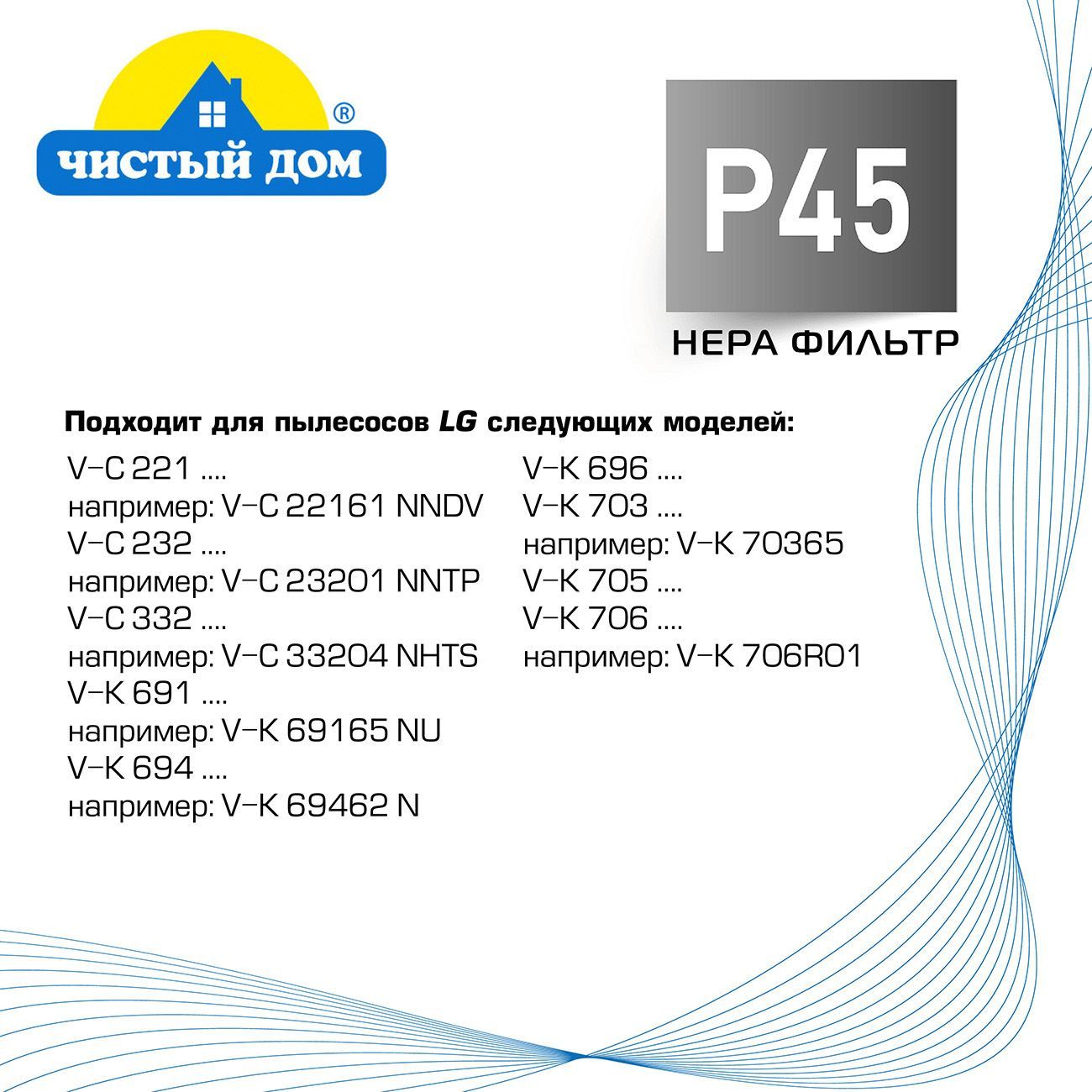 Чистый Дом P 45 LGE HEPA фильтр для пылесосов LG