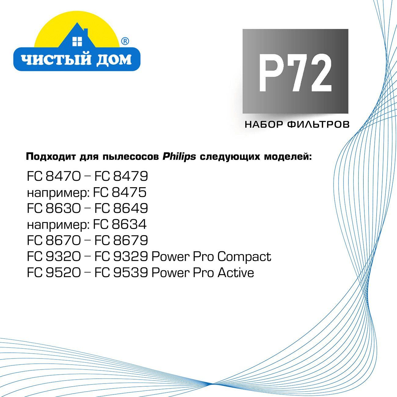 Чистый Дом P 72 PHI Набор фильтров для пылесосов Philips ( Филипс) FC8470-8479, FC8630-8649, FC9320-9329, FC9520-9529