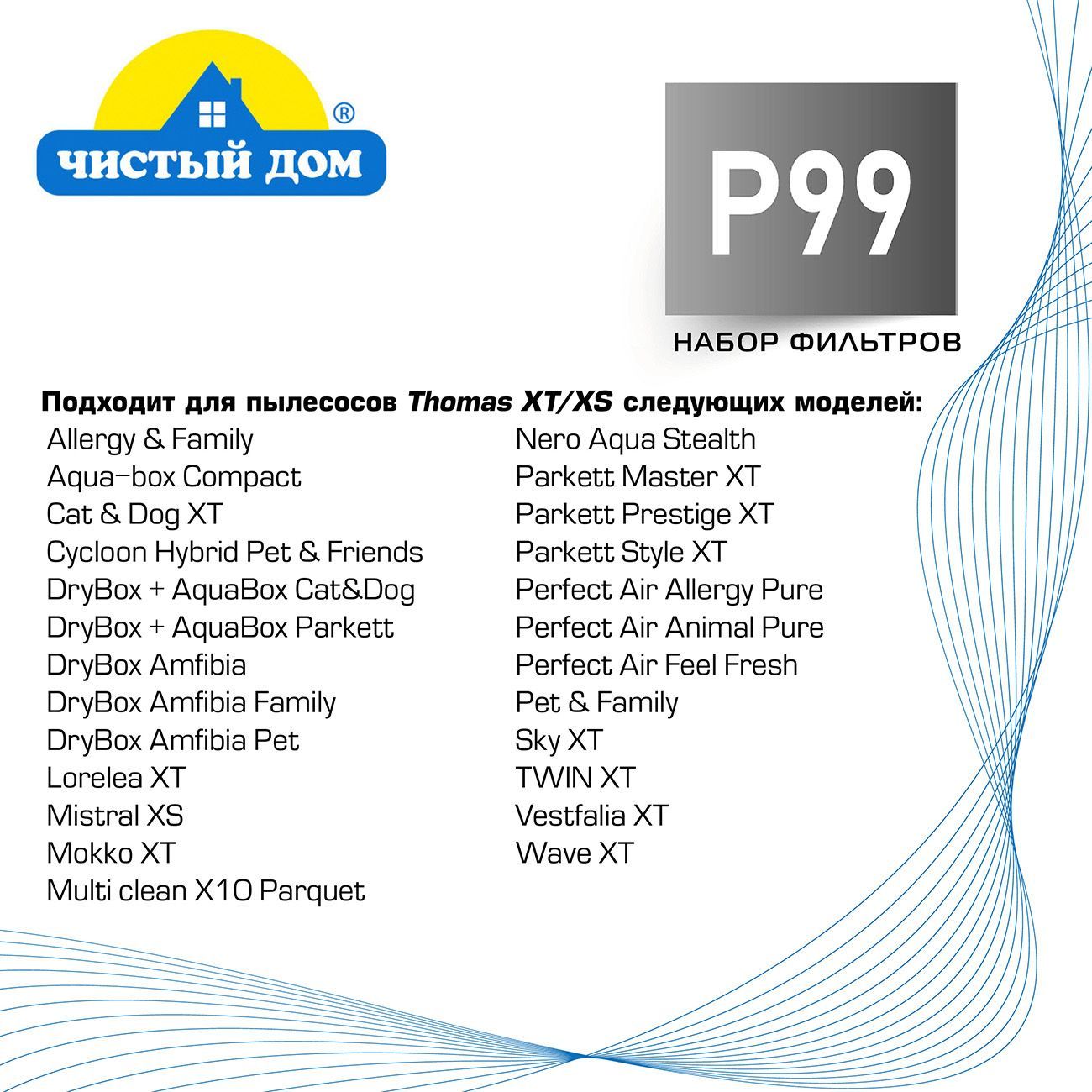 Чистый Дом P 99 TMS HEPA, набор фильтров для пылесосов Thomas XT