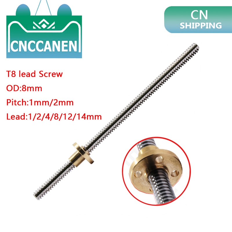 ЧПУ 3D принтер T8 свинцовый Винт OD 8 мм свинцовый 1/2/4/8/12/14 мм Шаг 1/2 мм длина 100 мм 200 мм 300 мм 400 мм 500 мм 600 мм с латунная гайка