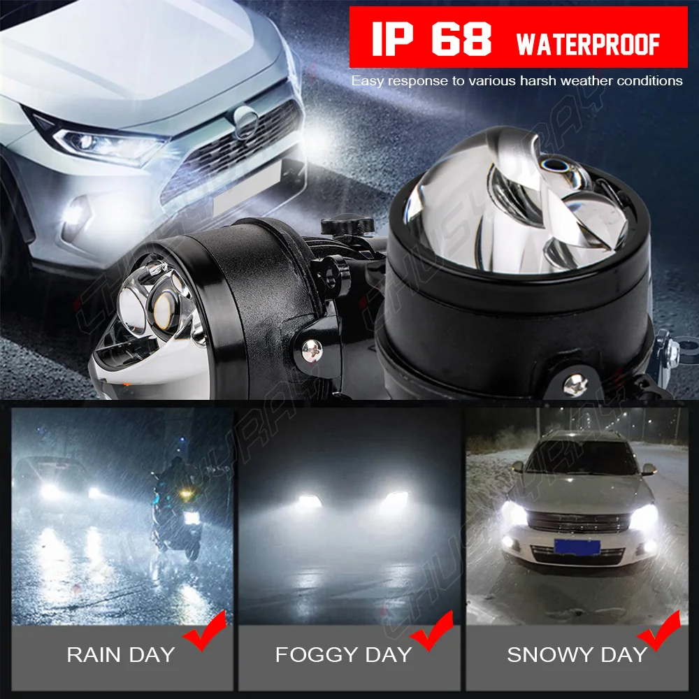 CHUSYYRAY Противотуманные фары для фар Светодиодные Автомобильные фары золотые + белые 3,0 дюйма 8000LM 38 Вт аксессуары модифицированный проектор для универсального