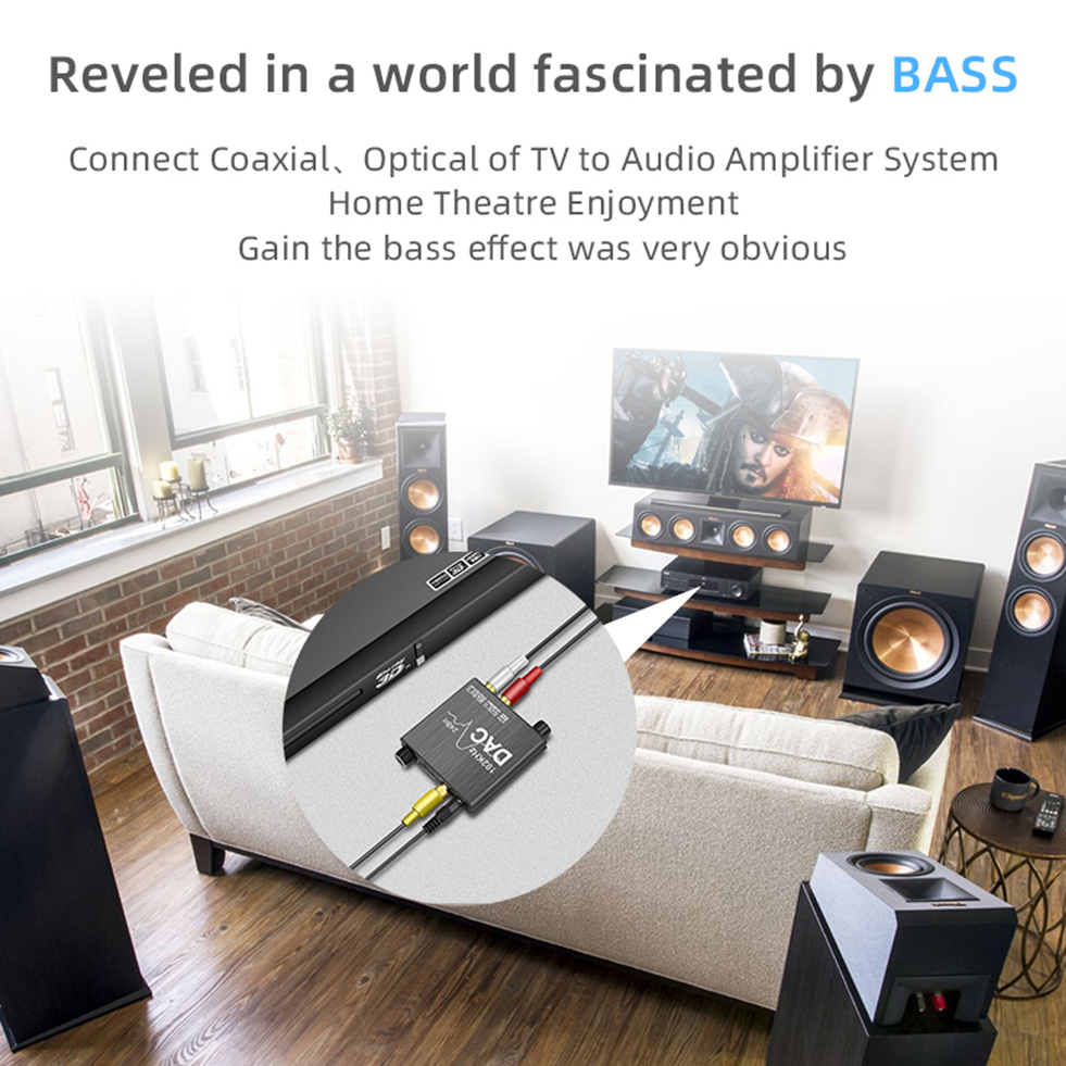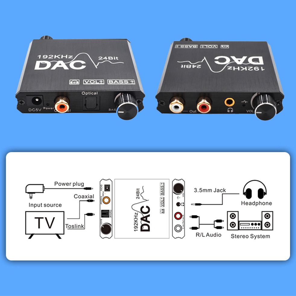 Цифро-аналоговый аудиоконвертер 192 кГц, регулятор басов и громкости DAC SPDIF, оптический аналоговый L/R RCA,Toslink оптический, разъем 3,5 мм