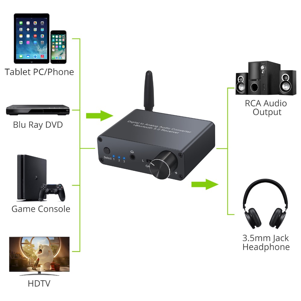 Этот преобразователь аудиосигнала из цифрового в аналоговый-разработана специально для домашнего или профессионального аудио переключения сигнала. Он преобразует коаксиальные с SPDIF Toslink аудио илиBluetooth-Совместимость с операционнымиСигналы для аналога л/п и 3,5 мм Джек аудио сигнала.