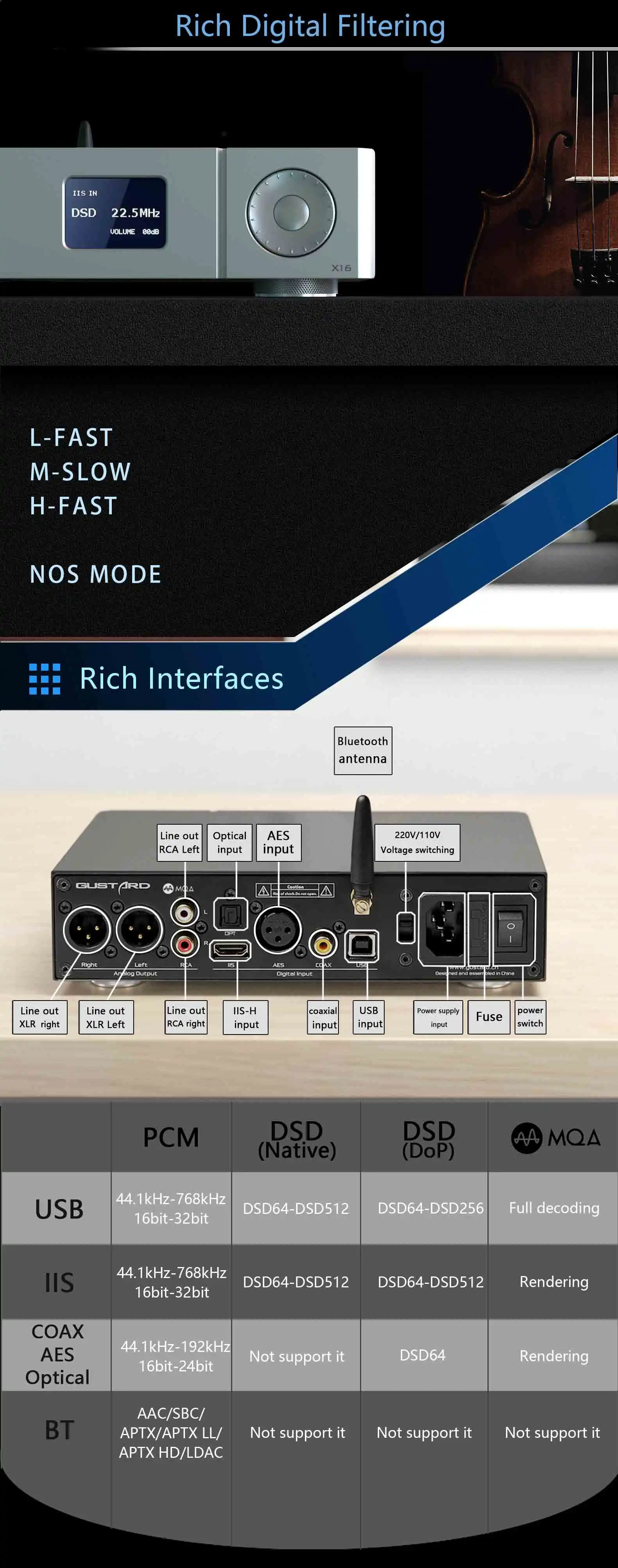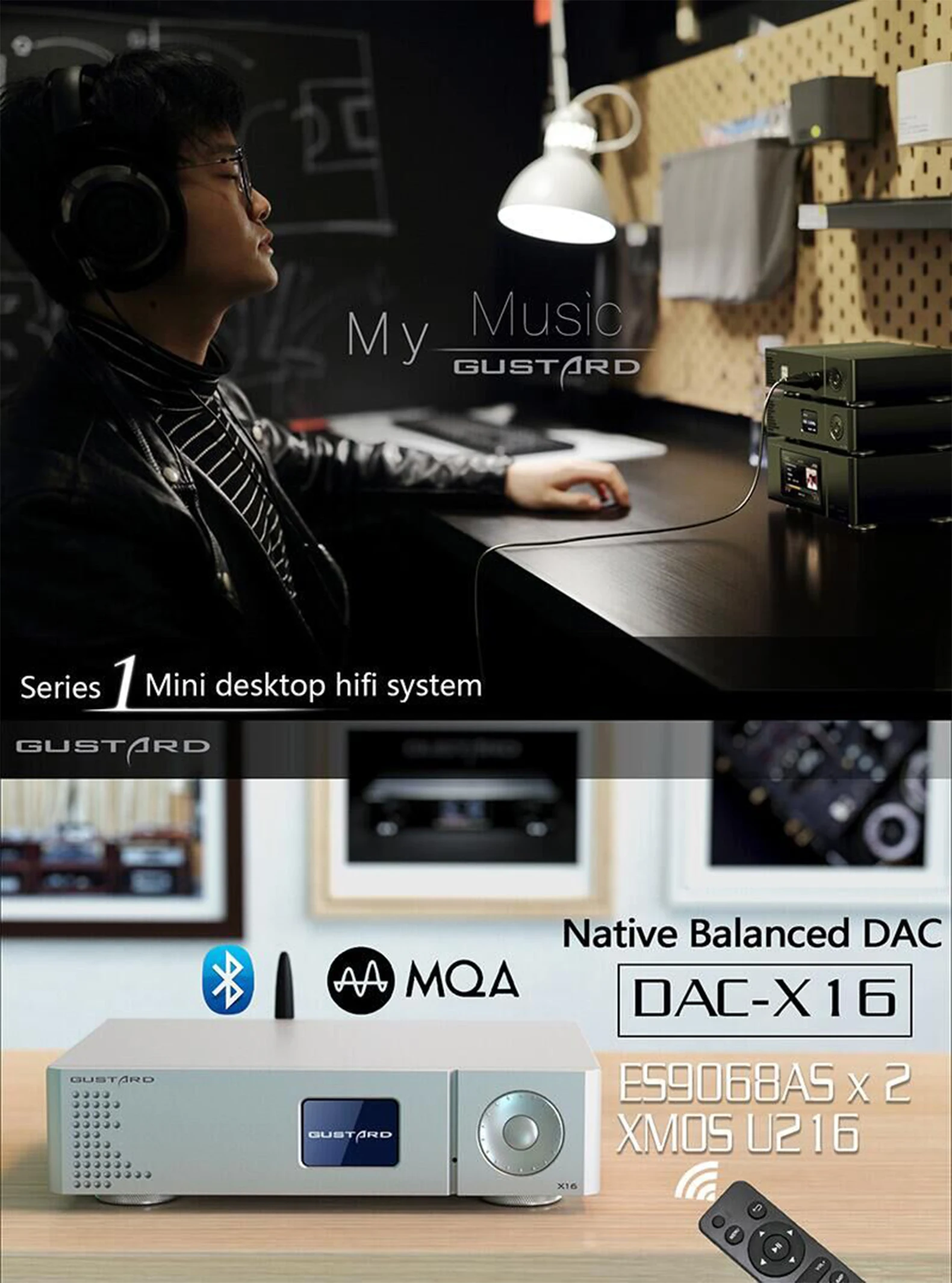 ЦАП GUSTARD X16 Цифро-аналоговый преобразователь (ЦАП) MQA-декодер Bluetooth5.0 Dual ES9068AS Собственный сбалансированный ЦАП Полное декодирование DSD51