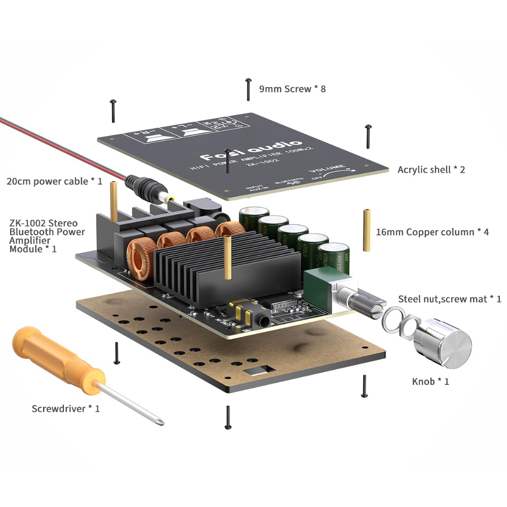 1. ZK-1002L стерео Bluetooth усилитель мощности модуль * 1