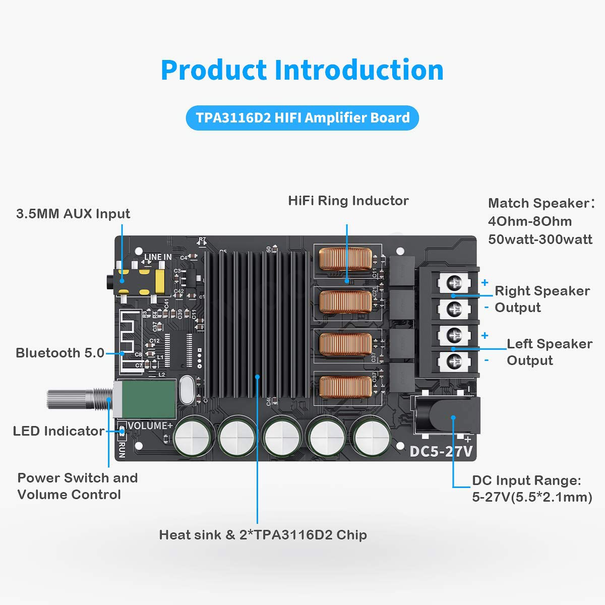 Цифровой аудио усилитель Woopker 200 Вт 2 * TPA3116D2 Bluetooth усилитель 2,0 каналов Высокоточный стерео вход AUX 3,5 мм
