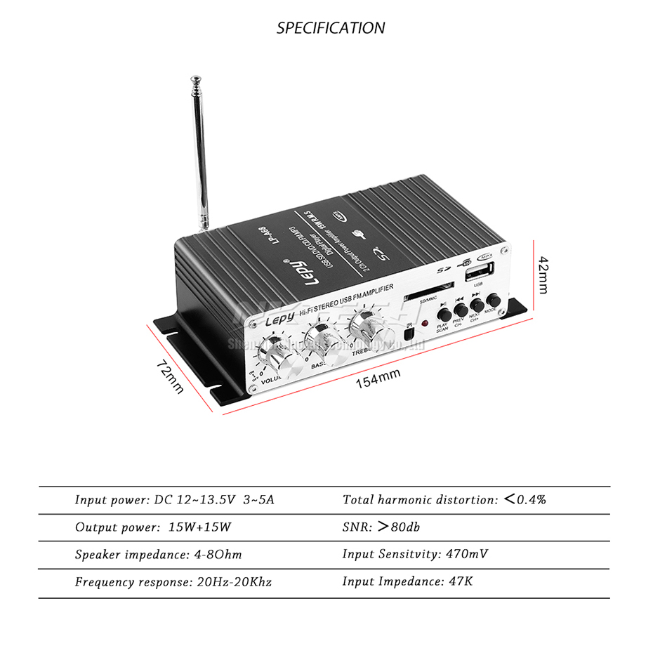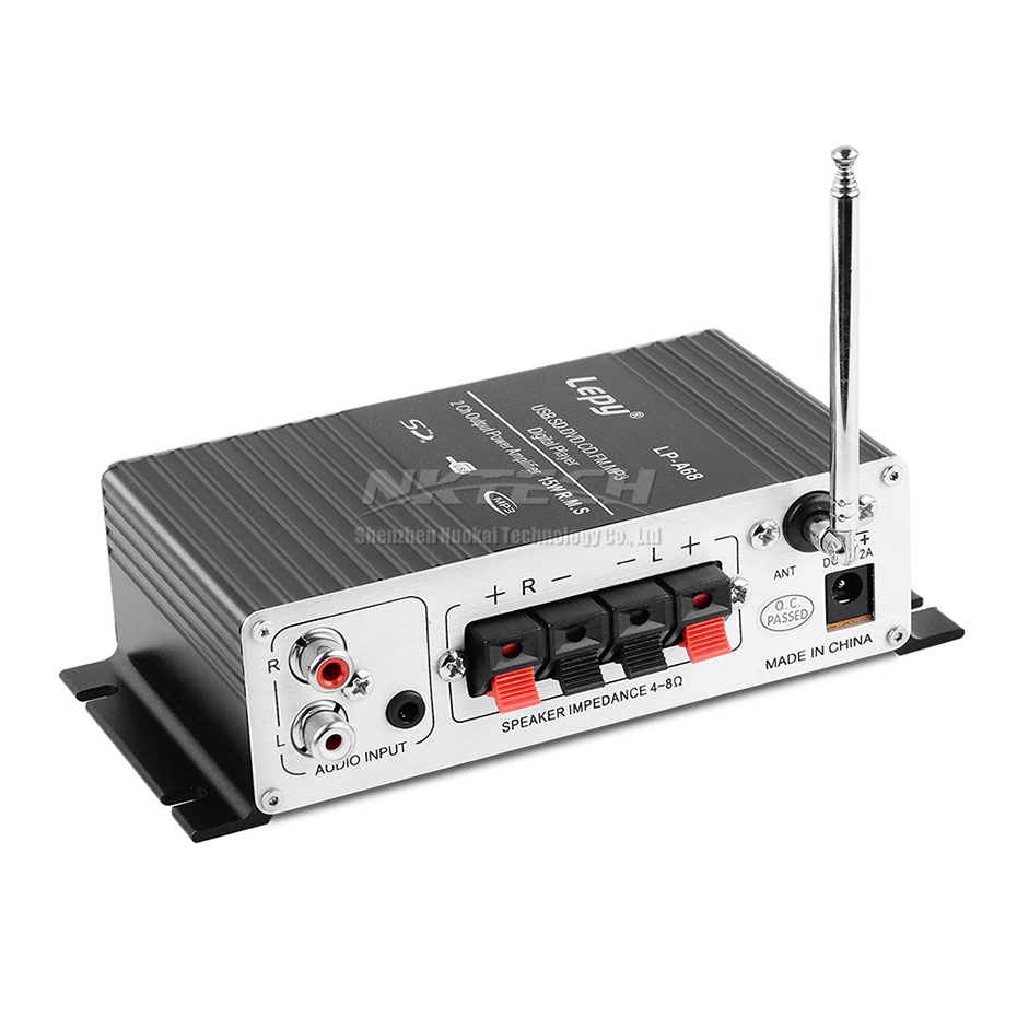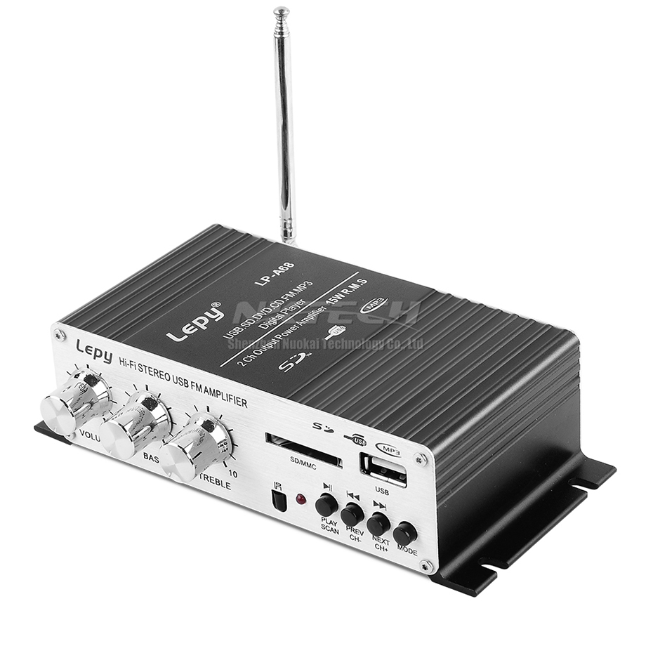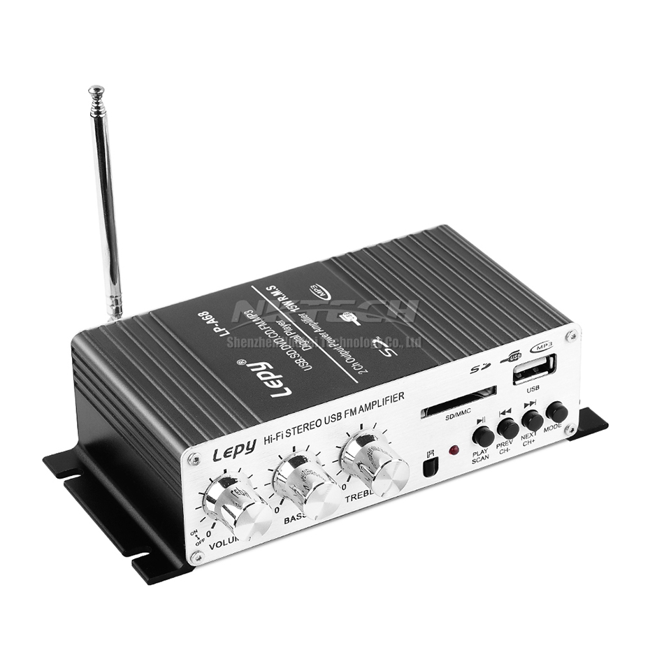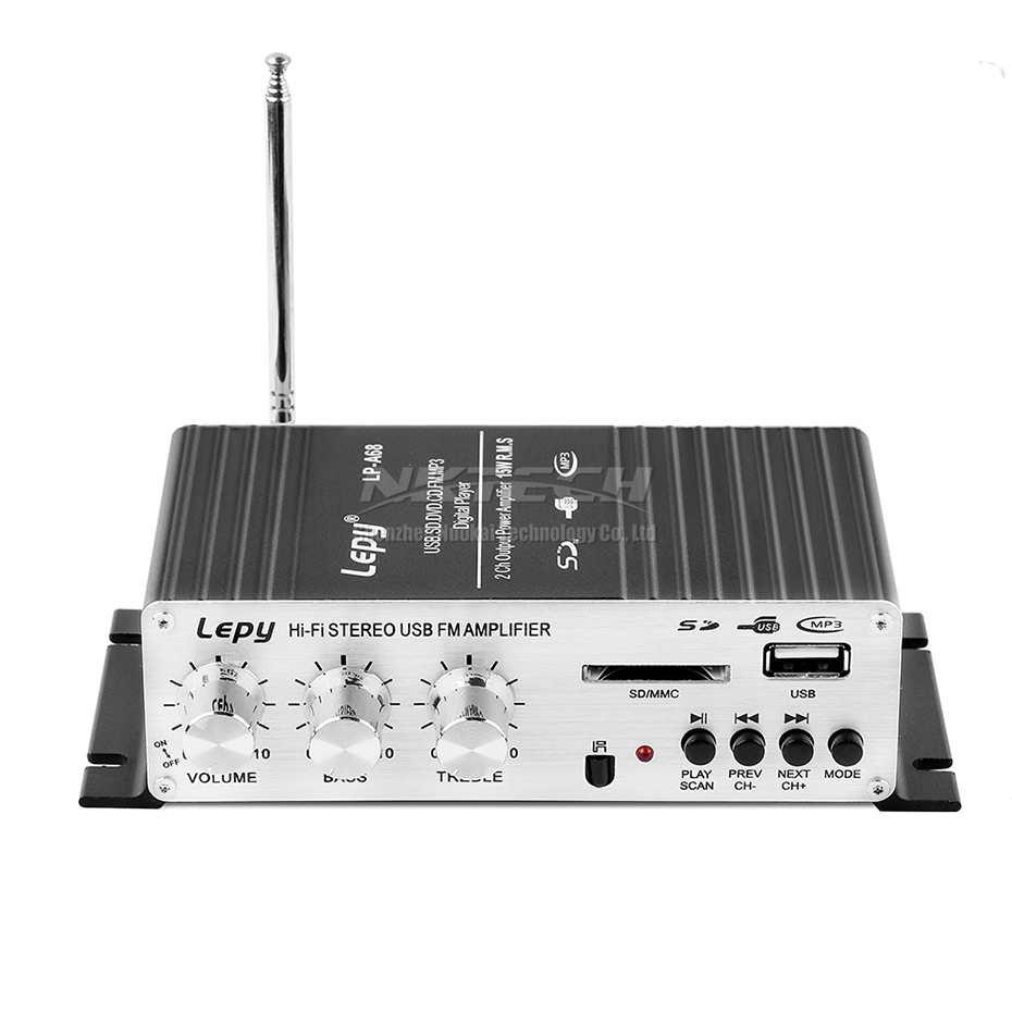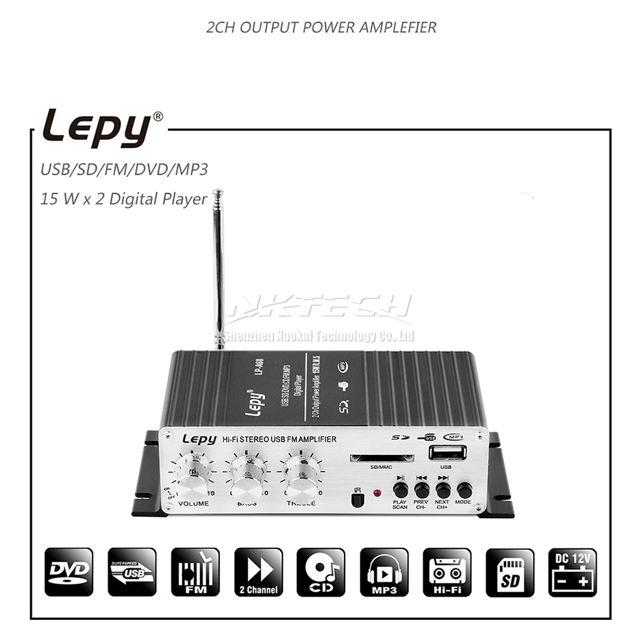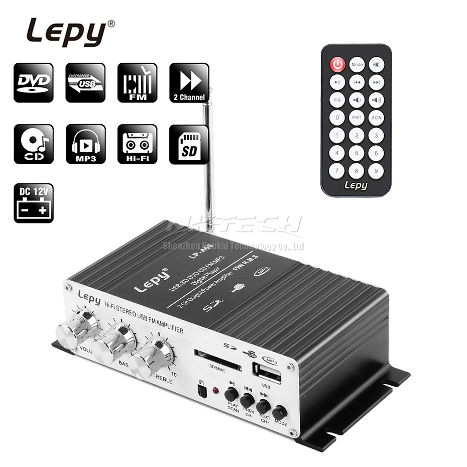 Цифровой автомобильный усилитель мощности Lepy, мини Hi-Fi стерео усилитель звука для дома, 2 канала, 15 Вт, RMS, SD, CD, DVD, MP3, USB, RCA, FM радио