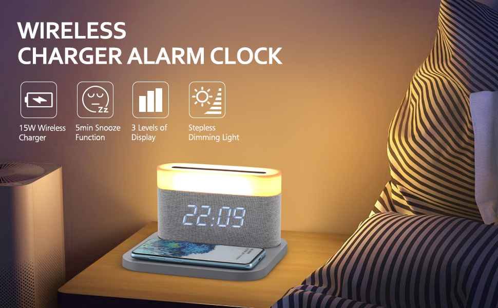 Уникальный дизайн 3-в-1 】 Цифровой будильник COLSUR объединяет будильник, беспроводную связь