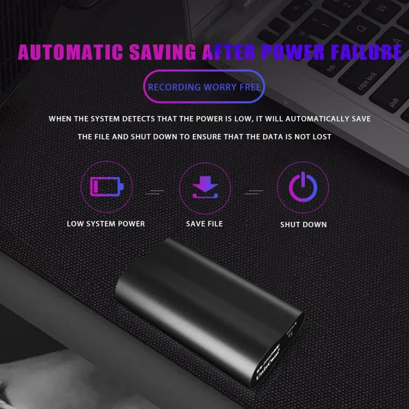 500 500 часов долгий срок службы батареи 】 Встроенный высококачественный аккумулятор 2800 мАч, непрерывное время работы аккумулятора после полной зарядки: около 500 часов записи, около 160 часов воспроизведения с наушниками. Его можно заряжать во время записи, и он поставляется с функцией автоматической защиты данных с низким аккумулятором.