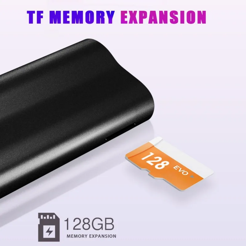 [Встроенная память 8 ГБ + Поддержка расширения 4-128GBTF] Встроенная память 8 ГБ может хранить файлы записи большой емкости для удовлетворения ваших потребностей записи, И поддерживает TF карту 4-128 Гб (не входит в комплект) расширения памяти, которая может вместить массивные файлы записи и музыкальные файлы.