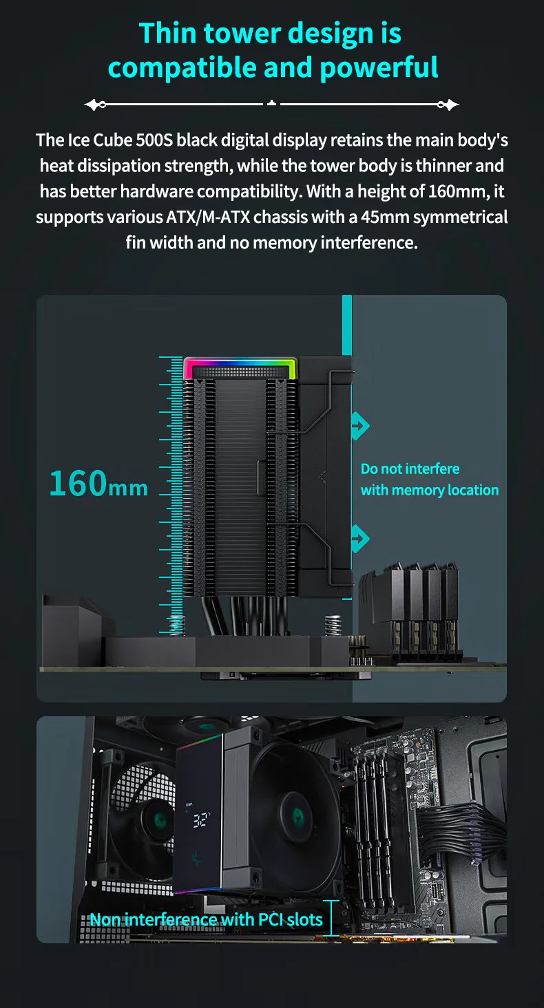 Цифровой дисплей DeepCool AK500S, 5 тепловых трубок