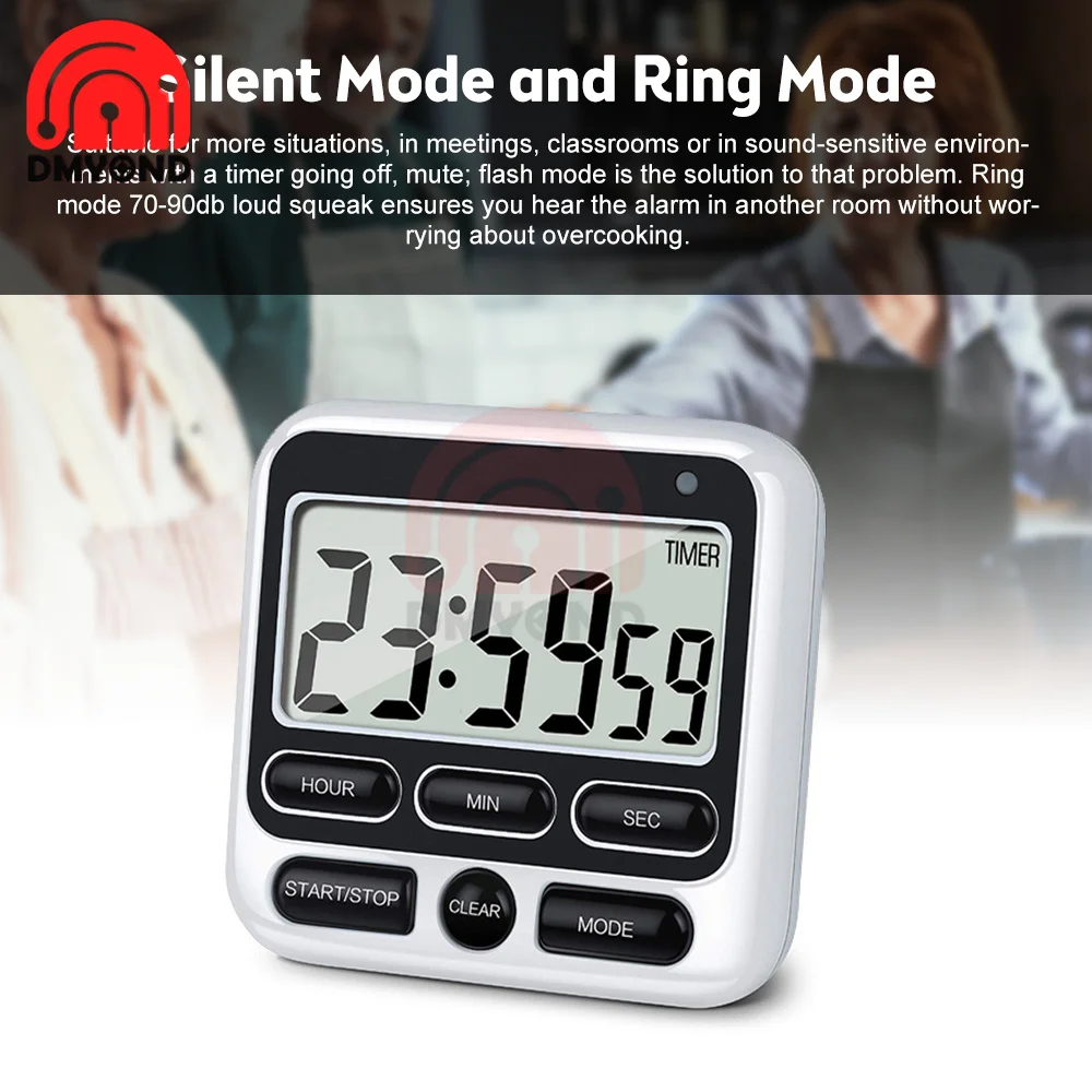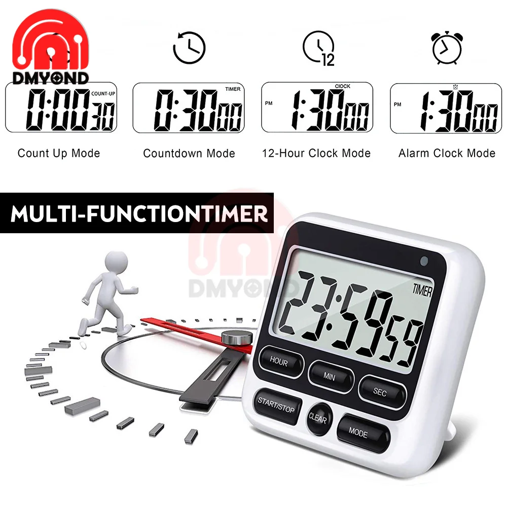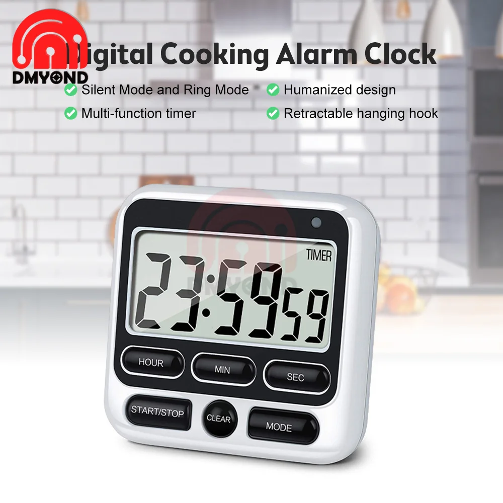 Цифровой экран, кухонный таймер, большой дисплей, цифровой таймер, квадратные часы для приготовления пищи, часы для сна, секундомер, часы