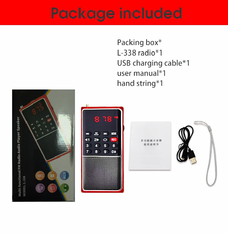 EONKO Super Bass Цифровое FM-радио L-338 с TF USB-рекордер Аккумуляторная батарея