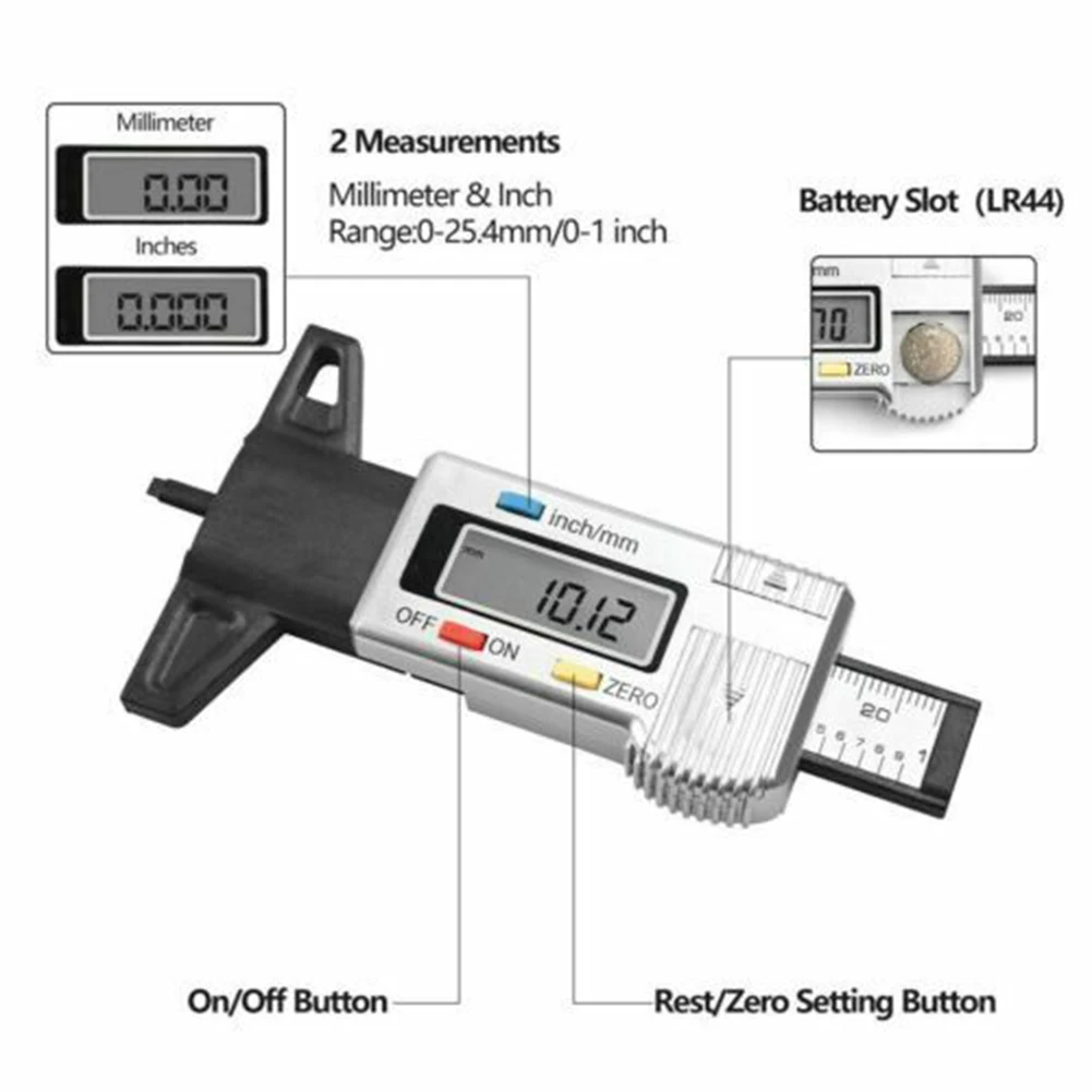 Цифровой глубиномер для протектора, серебристый измеритель глубины протектора шин для мотоцикла, грузовика, цифровой тестер, измерительный инструмент для обнаружения износа шин