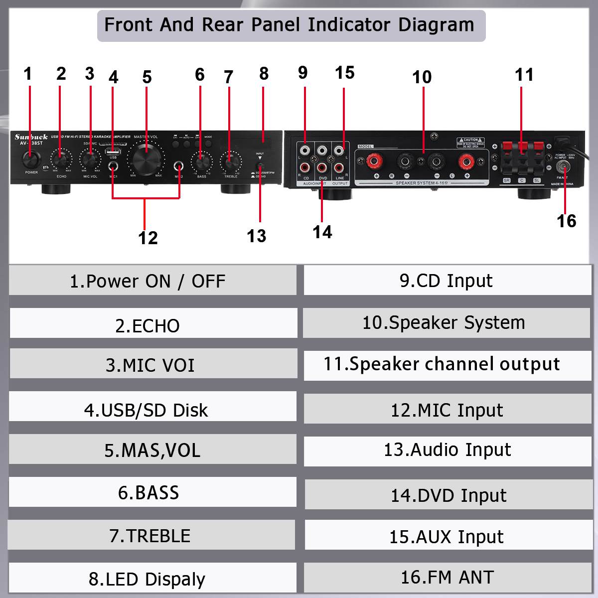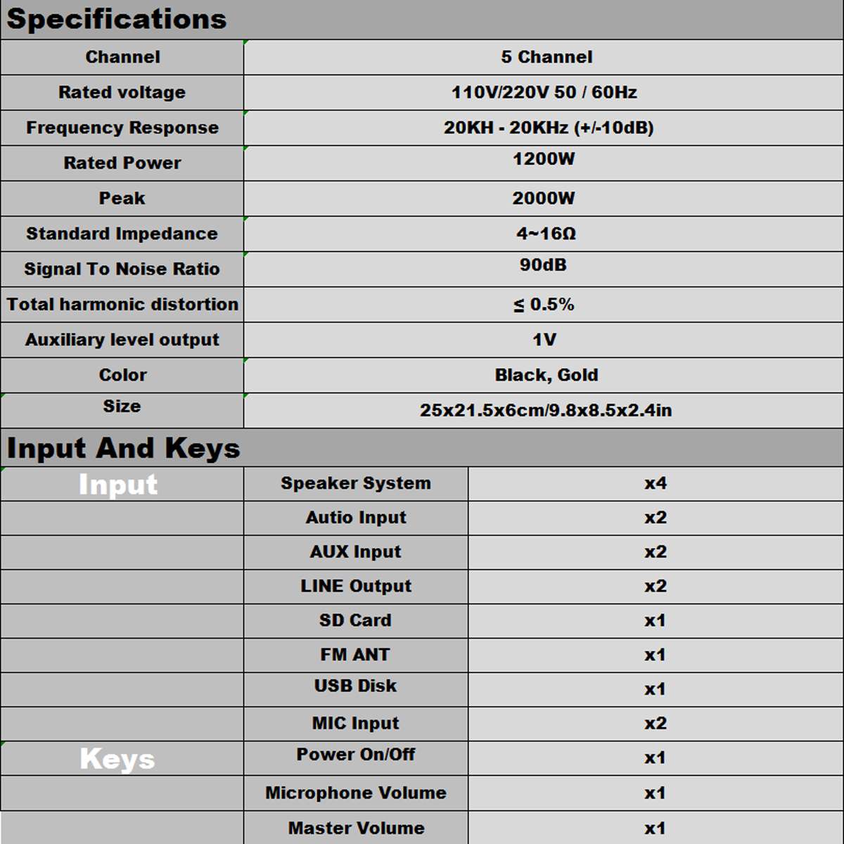 Цифровой Hi-Fi усилитель мощности SUNBUCK, 2000 Вт, Гц, 5-канальный, поддержка 2 микрофона, вход AUX