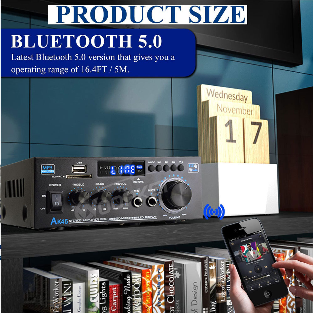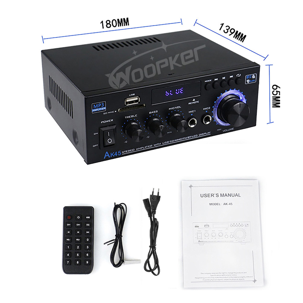 Цифровой Hi-Fi усилитель Woopker, AK45, Bluetooth, mp3-канал, 2,0, усилитель звука, поддержка 90-240 в, для дома и автомобиля, максимум 350 Вт * 2