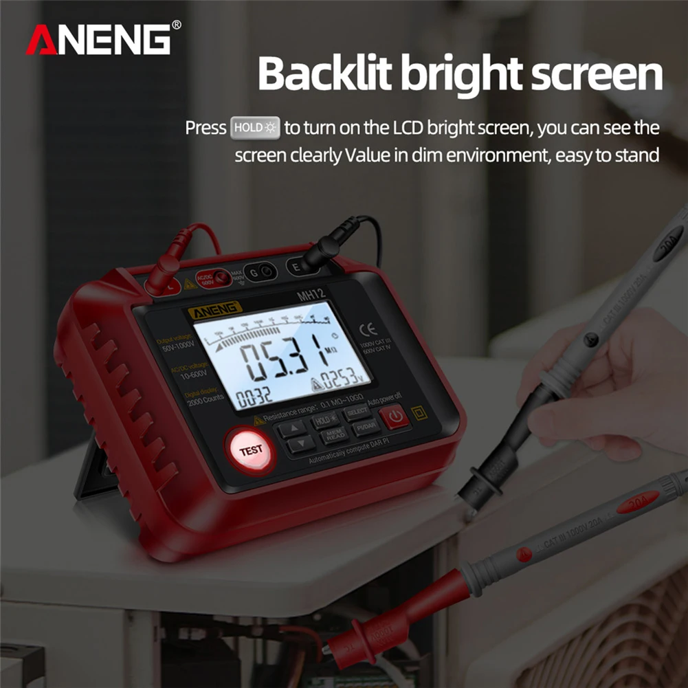 Цифровой мегомметр ANENG MH12, измеритель сопротивления изоляции, сопротивления, сопротивления, постоянного и переменного тока, с ЖК-дисплеем