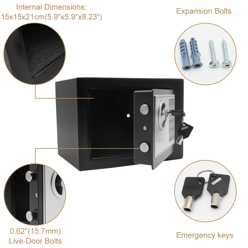 Цифровой Сейф Маленькие бытовые мини-стальные сейфы Денежный банк Безопасная коробка Храните наличные ювелирные изделия или документ с ключом