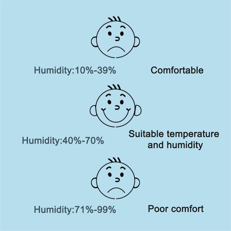 -Индикатор воздушного комфорта: значки уровня указывают на комфорт воздуха, отлично подходят для мониторинга условий жизни и здоровья семьи.