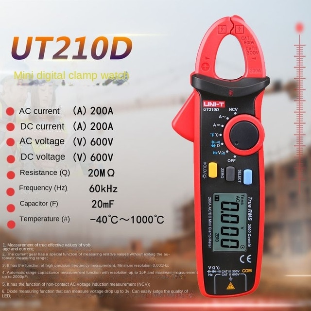 ВЗГЛЯДИТЕ НА ЭТО: UNI-T UT210D UT210E Мини-цифровые клещи 200A Клещи переменного тока постоянного тока Амперметр Напряжение Вольтметр Профессиональный Электрический тестер