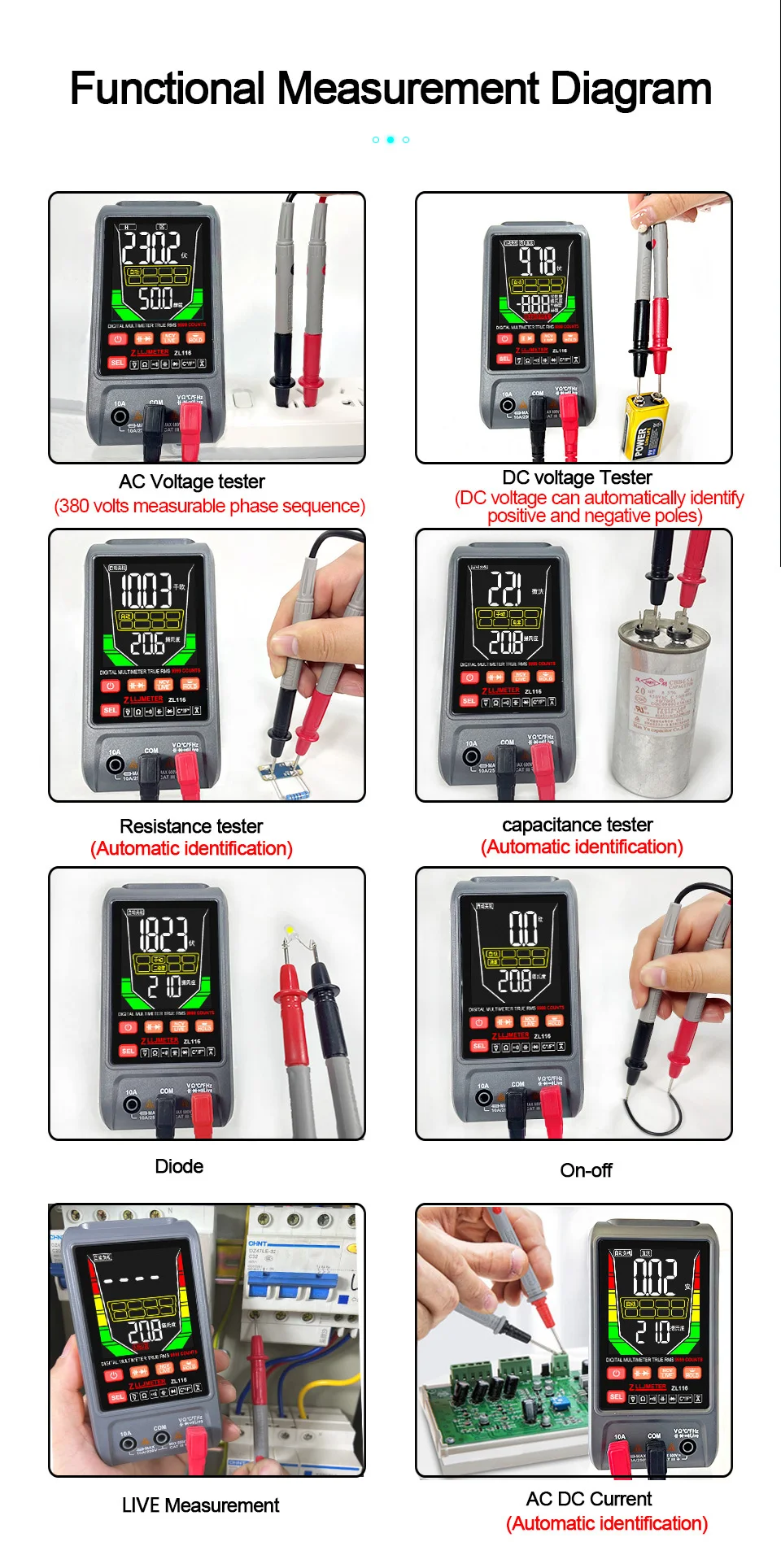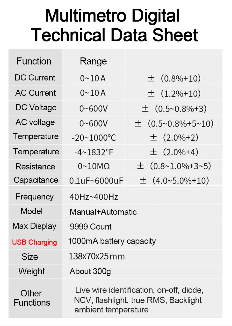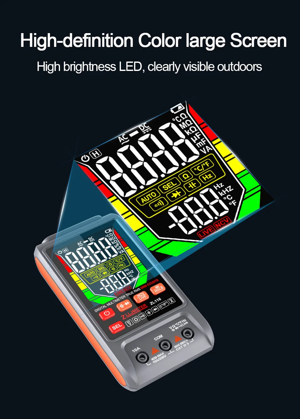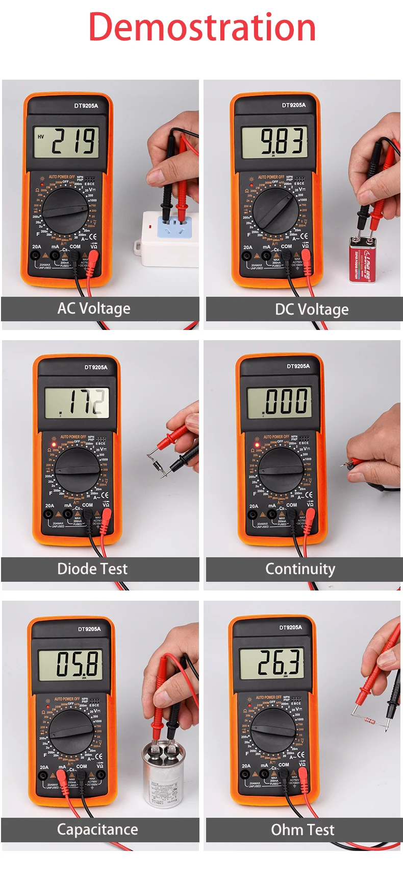 Цифровой мультиметр DC AC тестер емкости ручной диапазон измеритель напряжения истинное среднеквадратичное значение тестер транзисторов Инструмент электрика