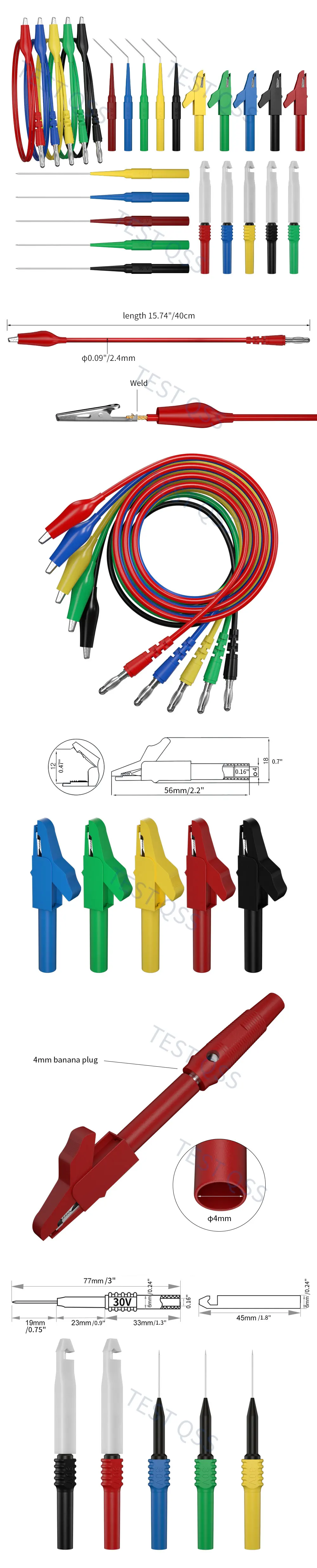Зажим типа «крокодил» для 4 мм разъем типа «банан» Тестовый провод: 5 цветов идентифицированных задних зондов для использования на соединителях жгута, топливных инжекторах и автомобильных датчиках