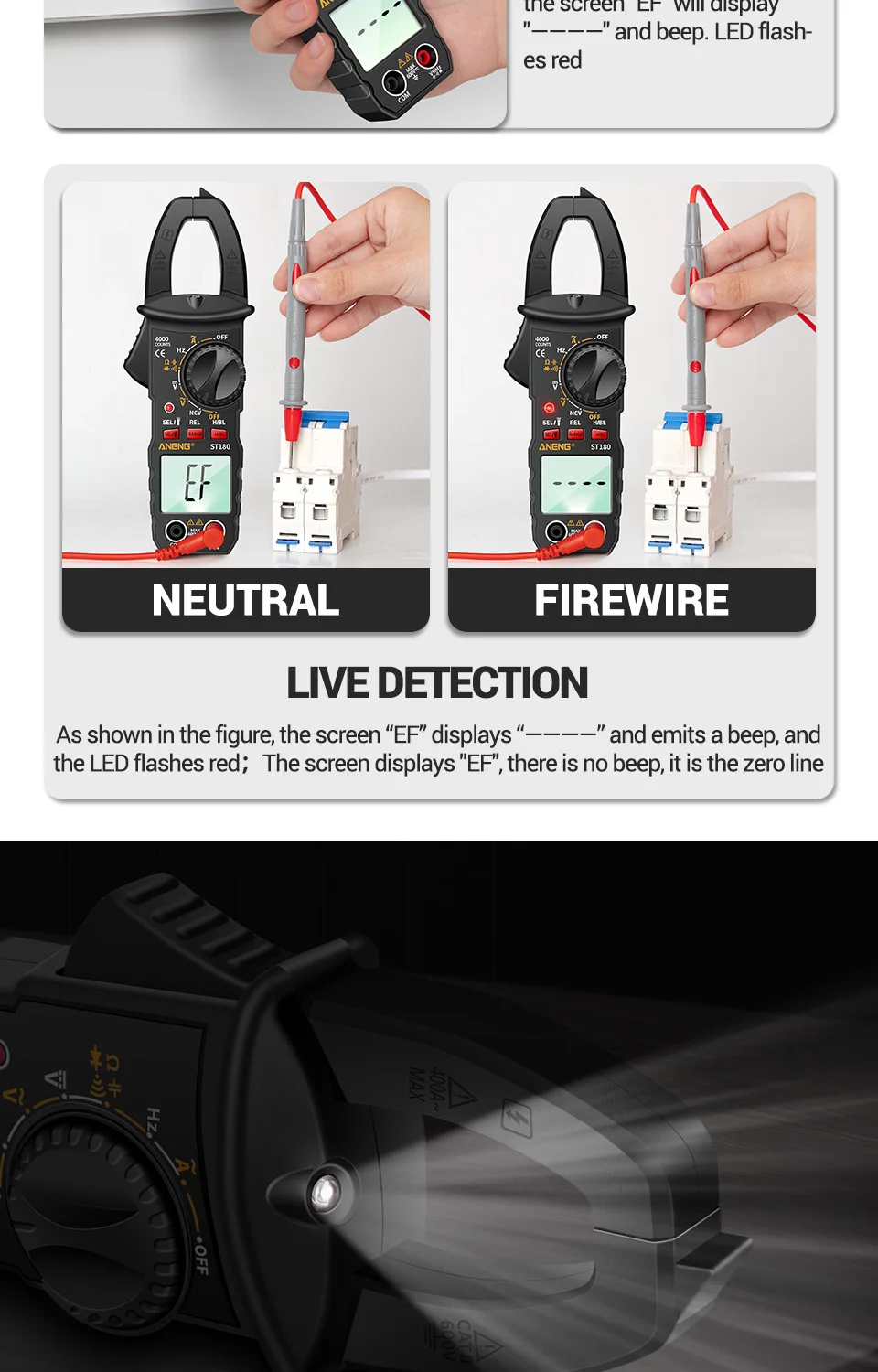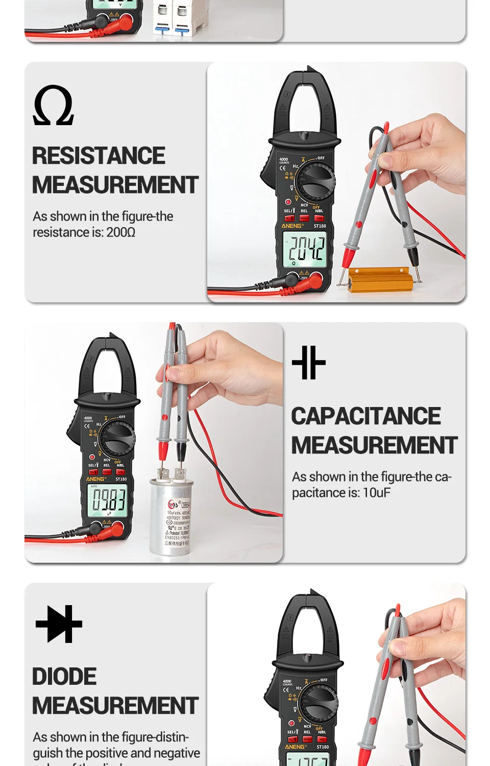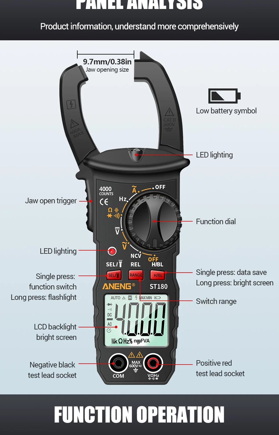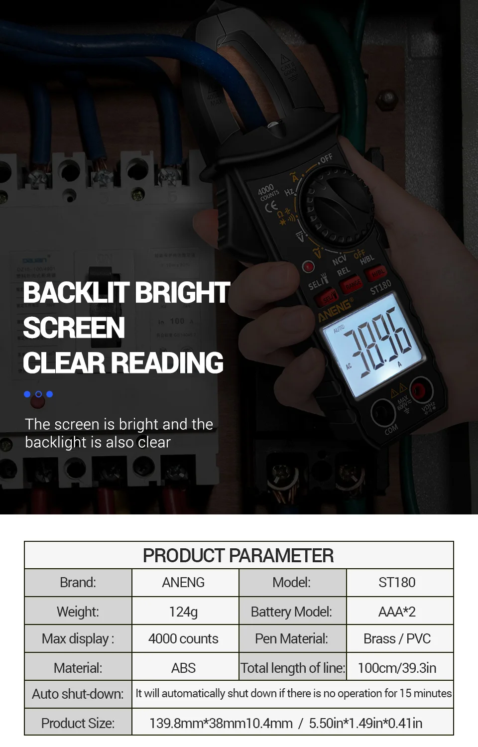• Простота использования:Токоизмерительные клещи ANENG ST180 с аналоговым и цифровым дисплеем легко читать и использовать даже для тех, кто не имеет опыта в электромонтажных работах.