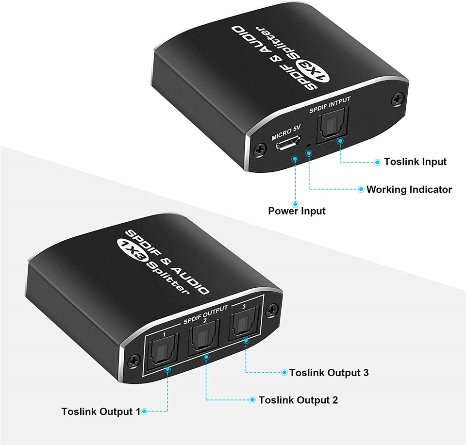 ZY-AS13, оптический цифровой аудиоразветвитель Navceker Toslink SPDIF, 3-портовый цифровой оптический разветвитель-это экономичный инструмент для домашнего кинотеатра, удаленного обучения, видеоконференций и других систем, позволяет разделить звук SPDIF / Toslink на три источника сигнала, подходящие для различных сценариев, что делает вашу жизнь более удобной.