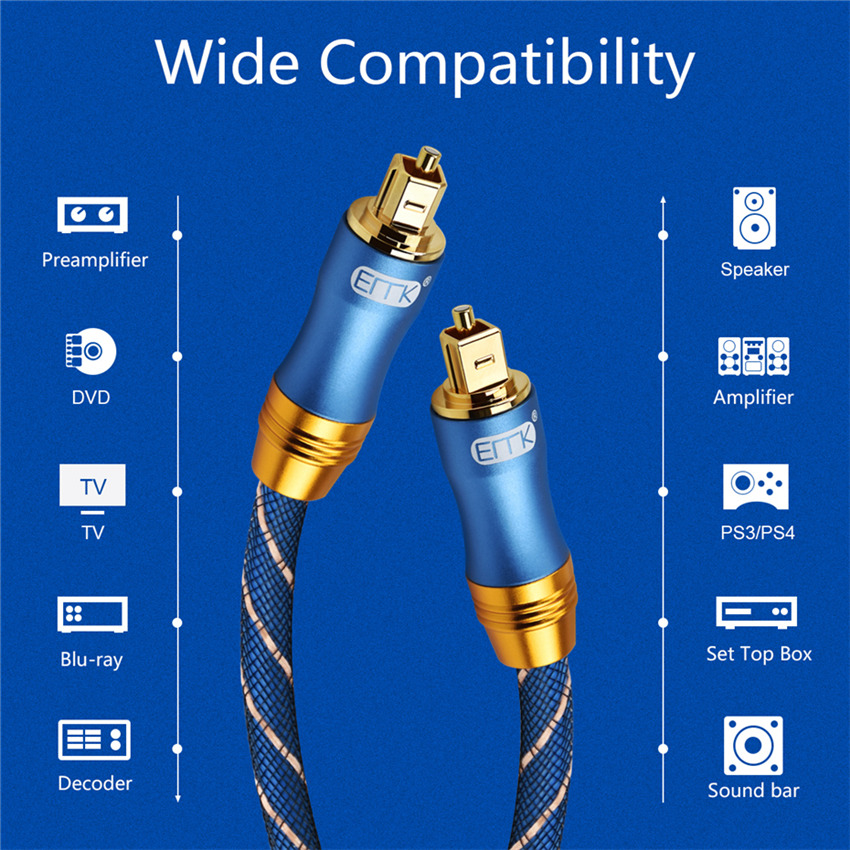 EMK цифровой оптический аудио кабель Toslink волоконно-оптический аудио кабель 1 м 2 м 3 м 10 м 15 м для Hi-Fi DVD CD TV