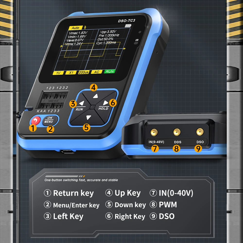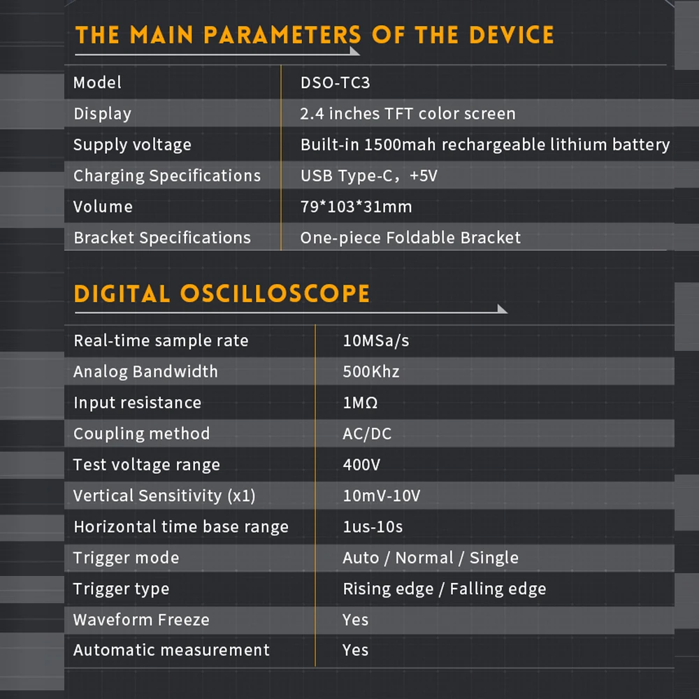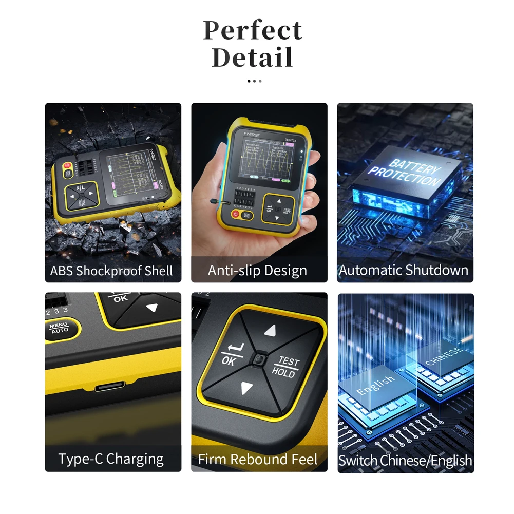 Этот продукт гениально объединяет в себе цифровой осциллограф, тестер электронных компонентов, генератор сигналов ШИМ и другие функции. Оснащен крупноразмерным TFT-дисплеем с цветной точечной матрицей. Встроенная перезаряжаемая литиевая батарея. Принесите более практичные функции пользователям с небольшим размером. Если вы заинтересованы в этом продукте, приходите и попробуйте, он вас не подведет.