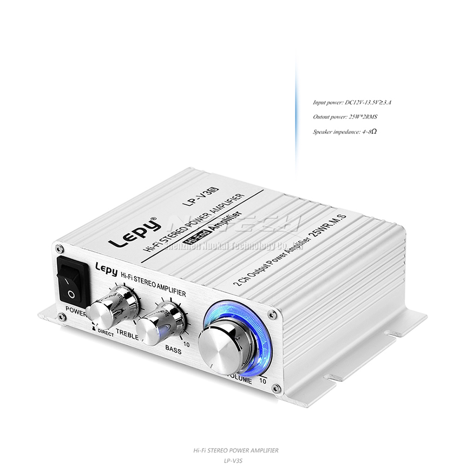 Цифровой плеер LP-V3S Lepy, автомобильный мощный Hi-Fi стереоусилитель, динамик 3,5 мм, аудиовход, MP3, для мотоцикла, Усилитель 2x25 Вт RMS