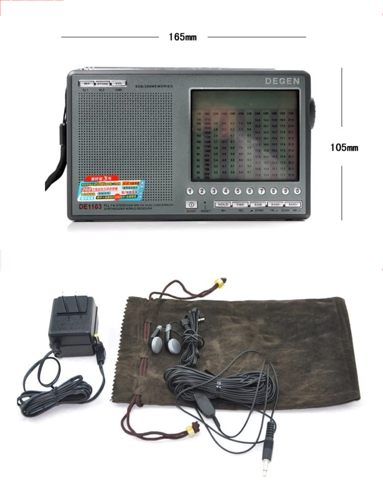 DE1103-это портативное продуманное полнодиапазонное цифровое тюнинговое качество радио. С технологией DSP (цифровая обработка звука), которая значительно улучшает общую чувствительность приема и селективность, предлагает Вам отличный опыт листинга. Это приемник мирового диапазона с комплексным частотным охватом, включая FM/MW/SW/LW, односторонний диапазон (SSB), таким образом, DE1103 выделяется как один из лучших мировых диапазонов приемника среди своих сверстников.