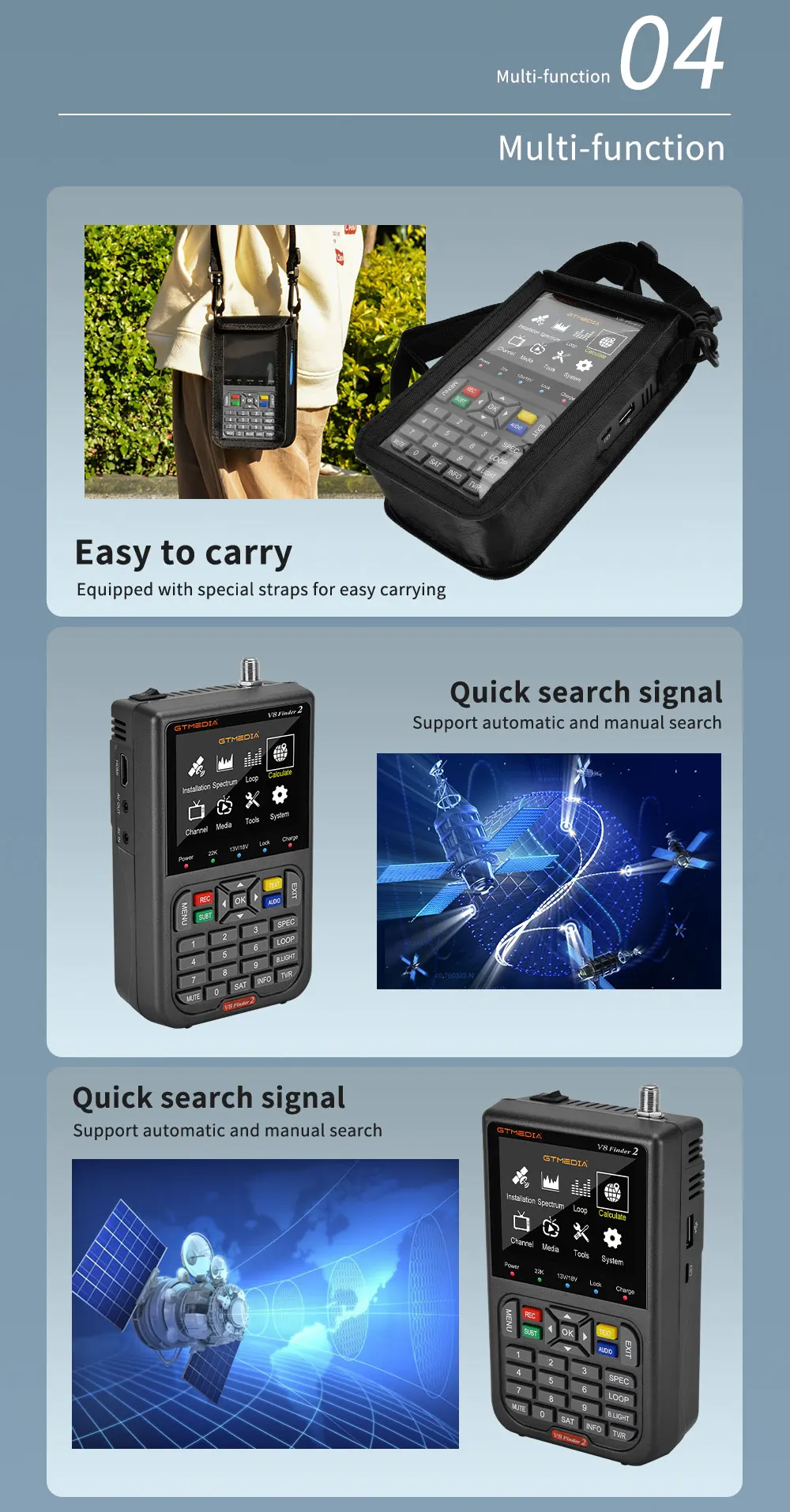 GTMEDIA V8 FINDER 2 Цифровой спутниковый искатель 7,4 В 5000 мАч, DVB-S/S2/S2X 3,5 ''ЖК-дисплей 1080P HD MPEG-2/4 ACM Satfinder