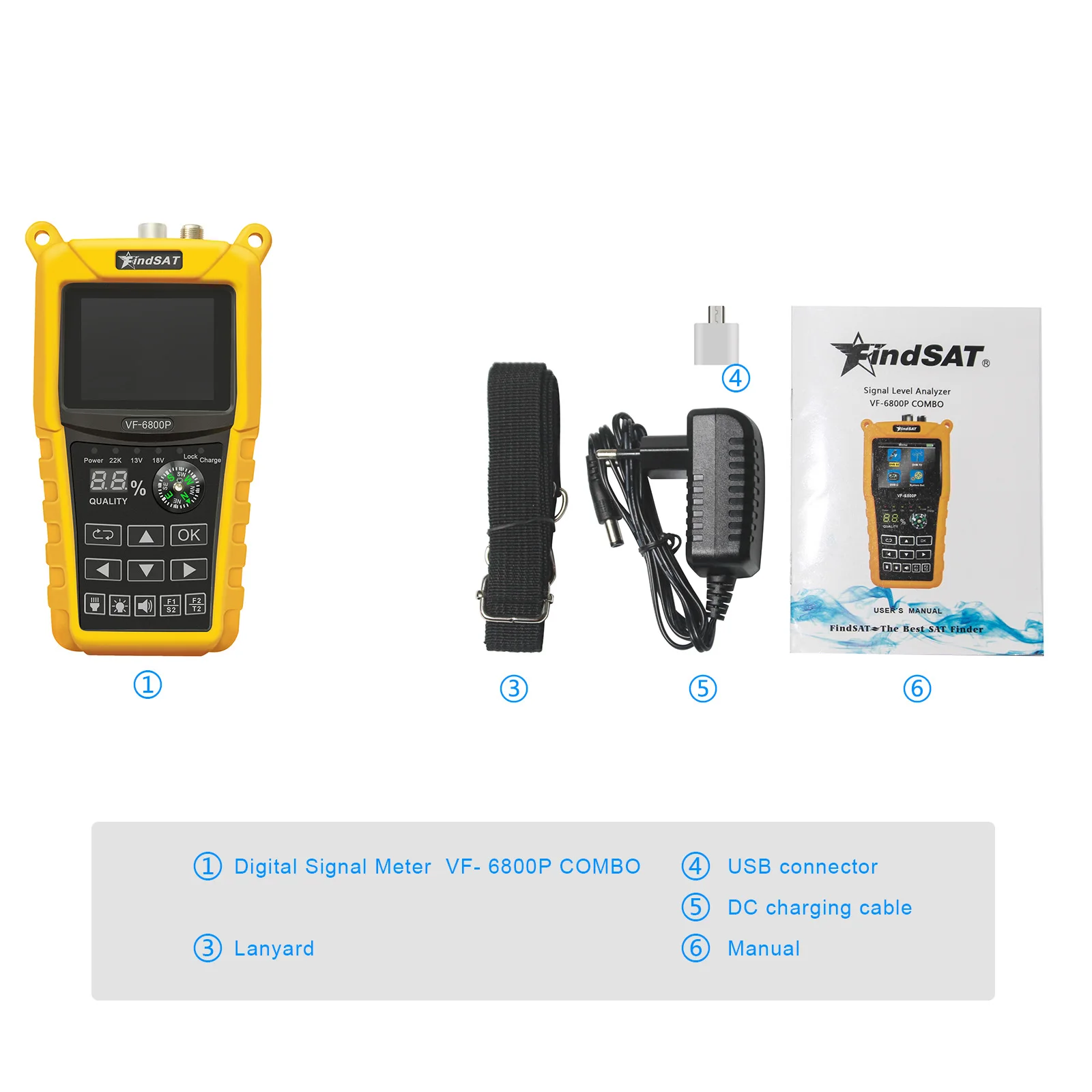 VF-6800 Поддержка спутникового искателя DVB-T2/DVB S2/DVB C Combo Sat Finder Meter для приемника спутникового телевидения, тюнер DVB T2