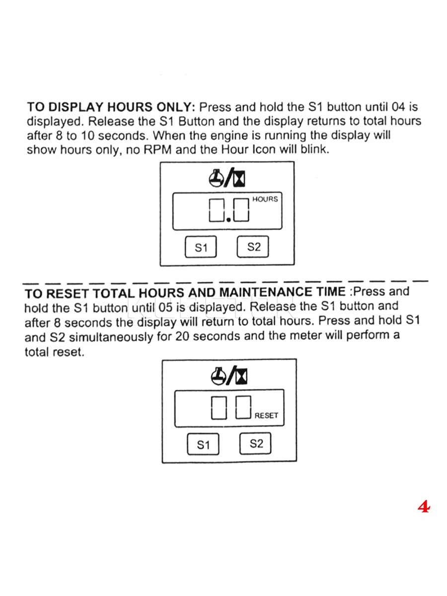 -При сбросе функции нулевого часа счетчик часов считывает до 10000 часов, а затем сбрасывается на ноль, и таймер может считывать до 99999 об/мин.