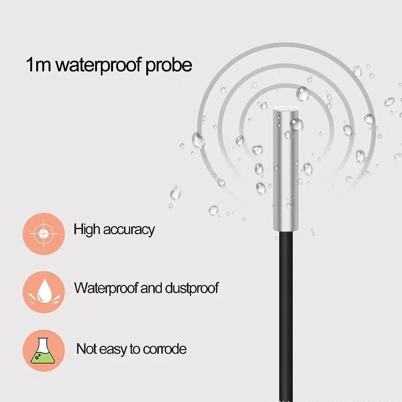 Оснащенный водонепроницаемым зондом, он может проверять температуру как на открытом воздухе, так и в помещении, например, в помещении с кондиционером, холодильнике, аквариуме или даже температуру воды и температуру тела.