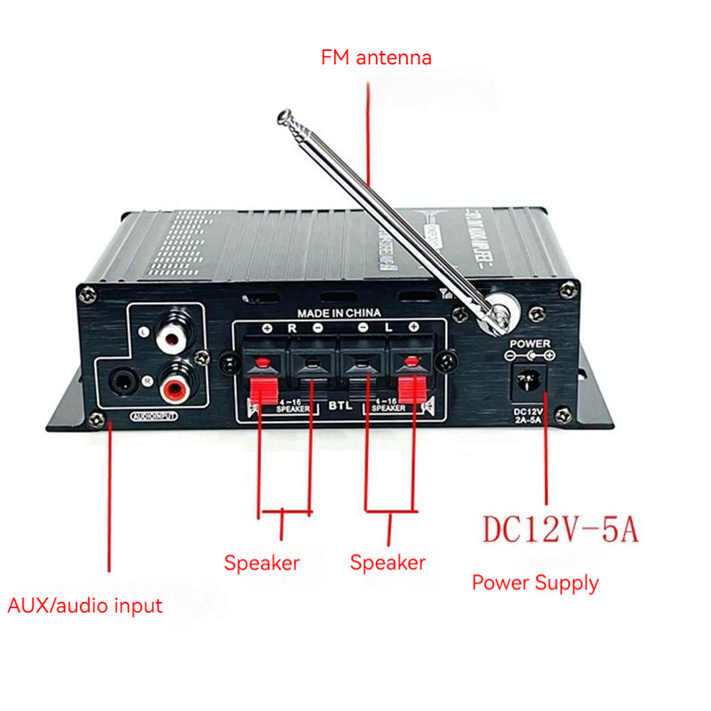 -Поддержка стерео FM-радио: усилитель мощности звука поддерживает стерео FM-радио и с функцией дистанционного управления.