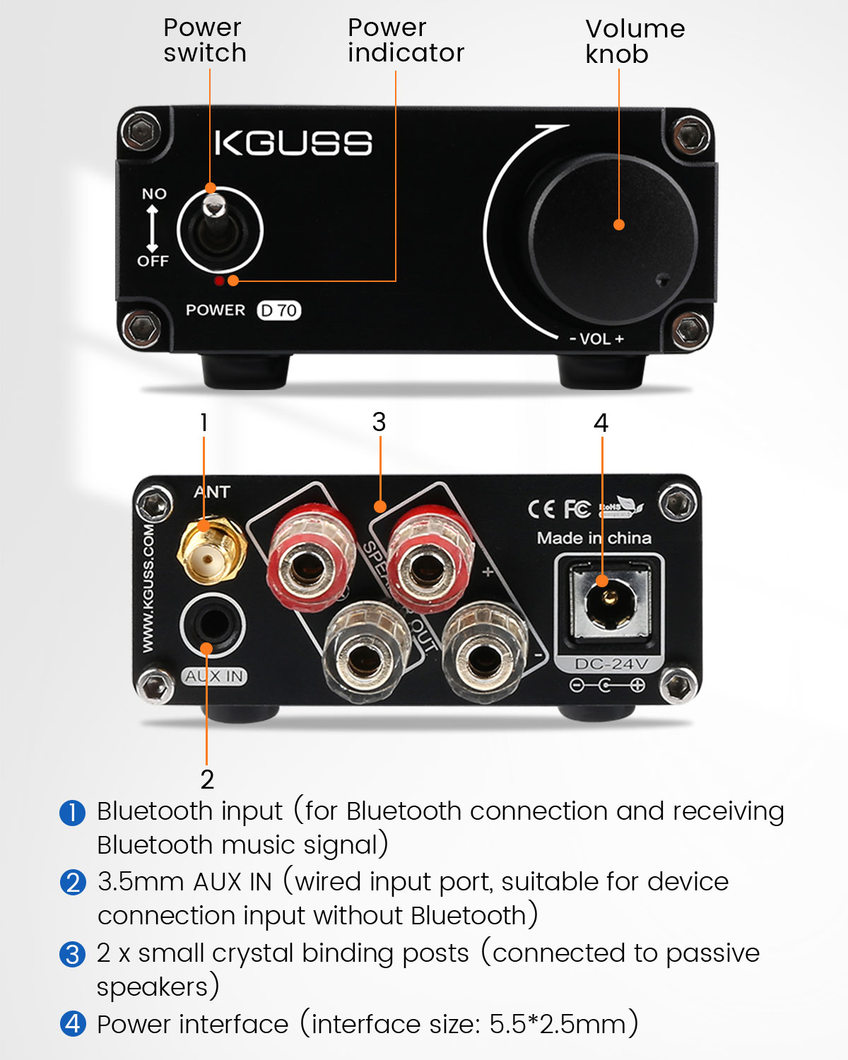 Цифровой усилитель KGUSS D70 MA12070 MINI HIFI класса D с поддержкой Bluetooth 5,0 70 Вт * 2