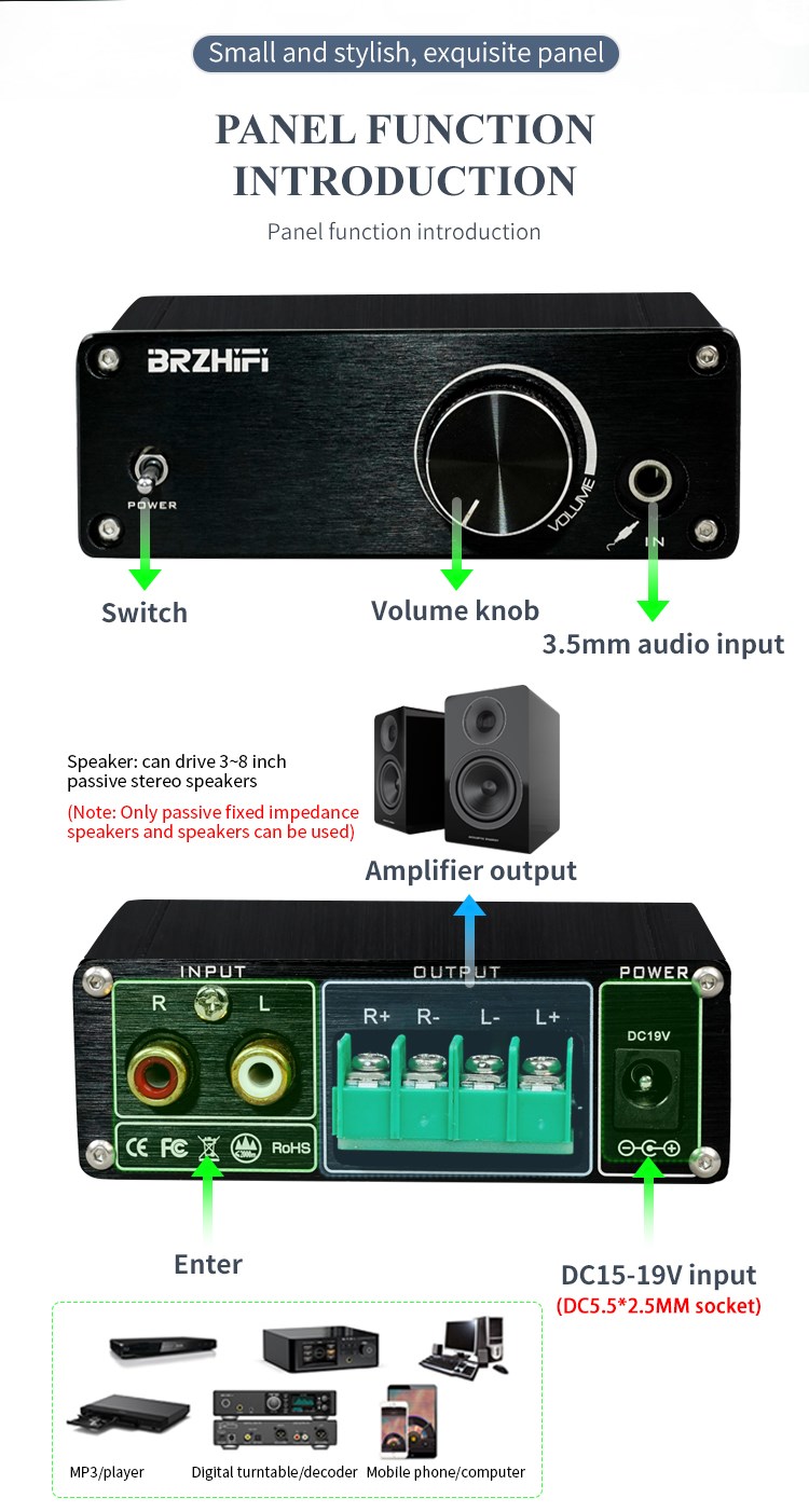 • Независимый предусилитель IC, чистый и мощный низкочастотный.