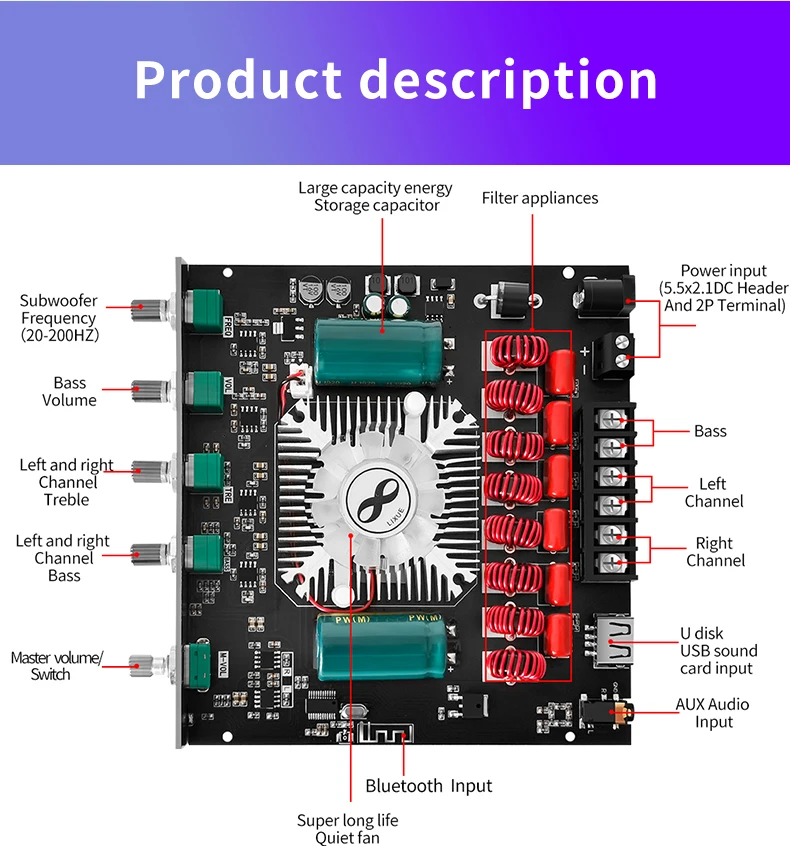Название продукта: 2,1 канальный BT усилитель мощности